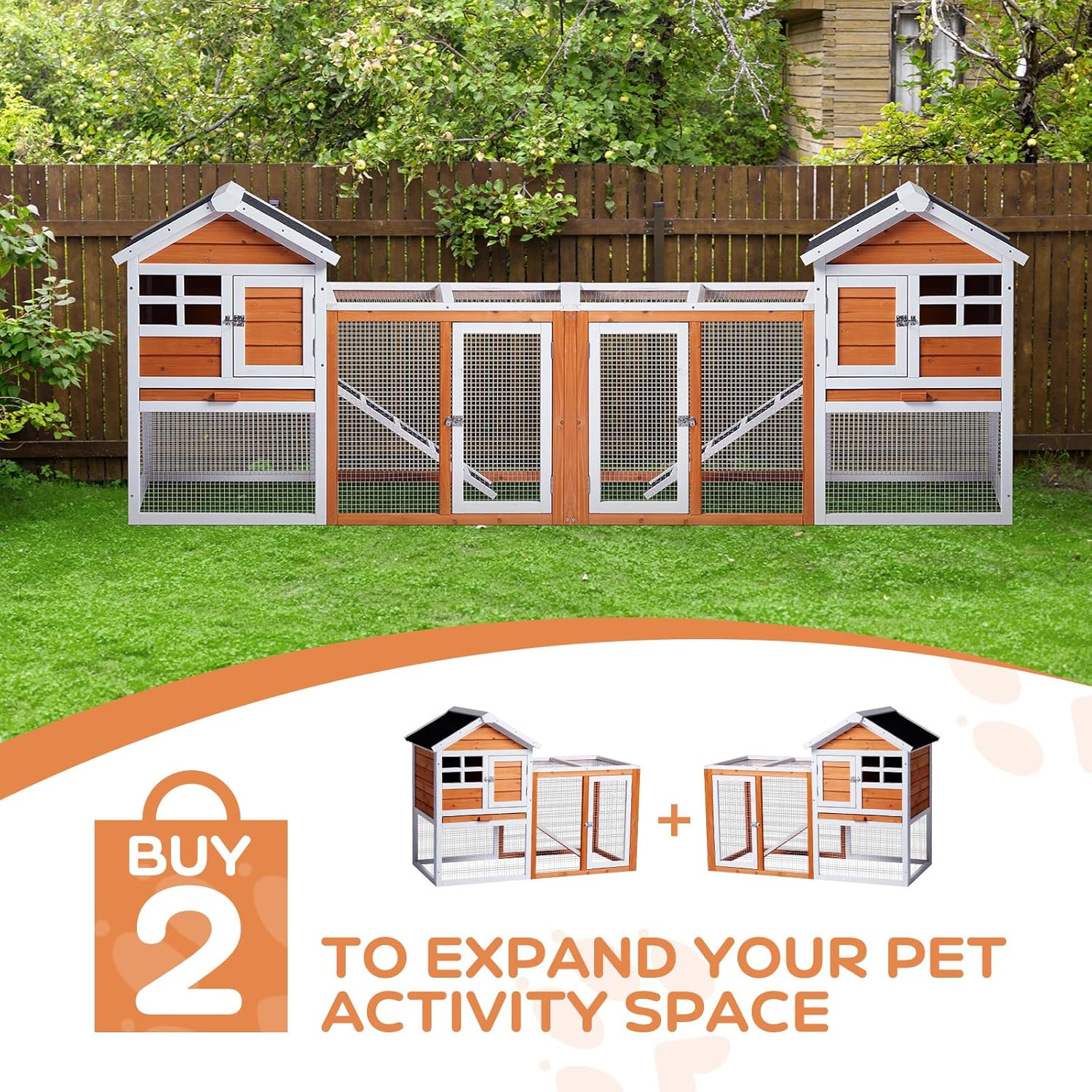- Bunny Home: The rabbit cage features an elevated room and a protected area surrounded by wire mesh, providing ample space for activities. It can be placed directly on the grass or in the backyard, allowing small pets to roam freely on the ground. Ideal for rabbits, guinea pigs, chickens, hamsters, pigeons, and lizards, with no weight restrictions. Our rabbit hutch is made from FSC-Certified wood