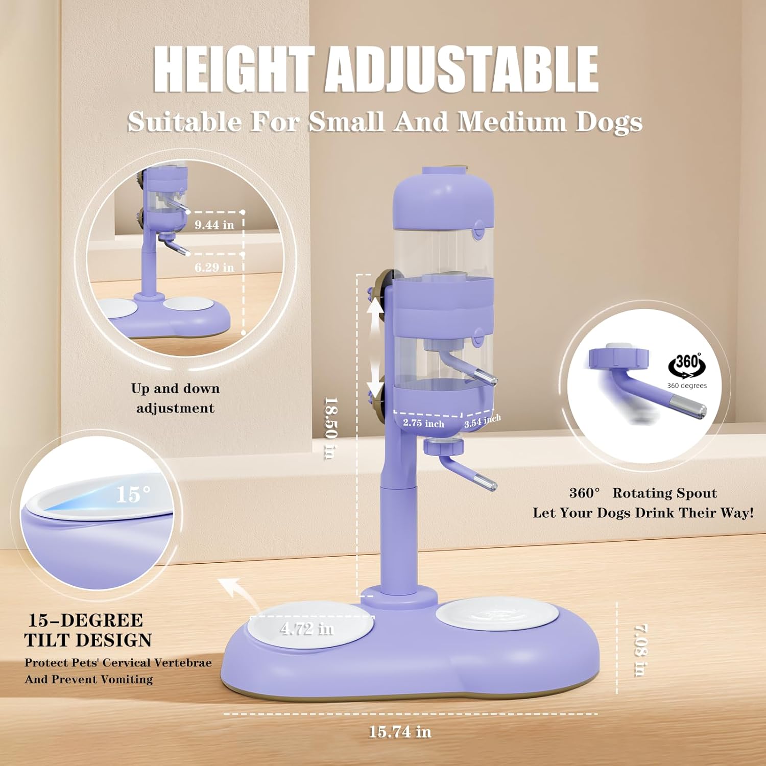 - 【360° Rotating Leakproof Nozzle】This durable, pet-safe water dispenser features a 360° rotating spout, allowing you to perfectly position it over your dog’s wet food dish to catch any drips and keep your floors clean. The easy-to-use roller-ball design suits puppies and small sized dogs, and the simple disassembly makes cleaning a breeze, ensuring your dog always has access to fresh water.