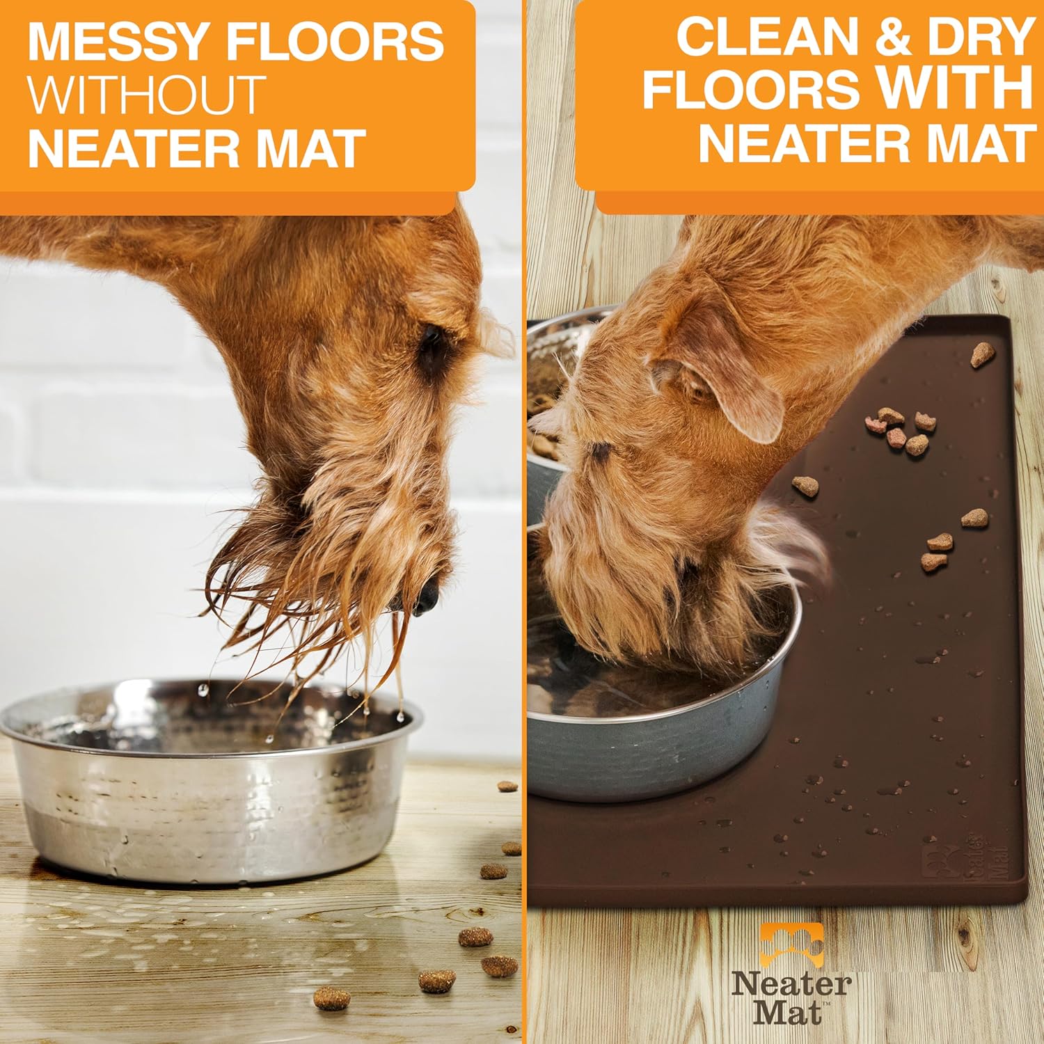 Neater Pet Brands Neater Mat Pet Mats for Food and Water, Cat & Dog Bowl Mat Waterproof Silicone, Feeding Tray, Dog Food Mats for Floors, Placemat w/Raised Edge for Under Bowls, 32" x 24", Brown
