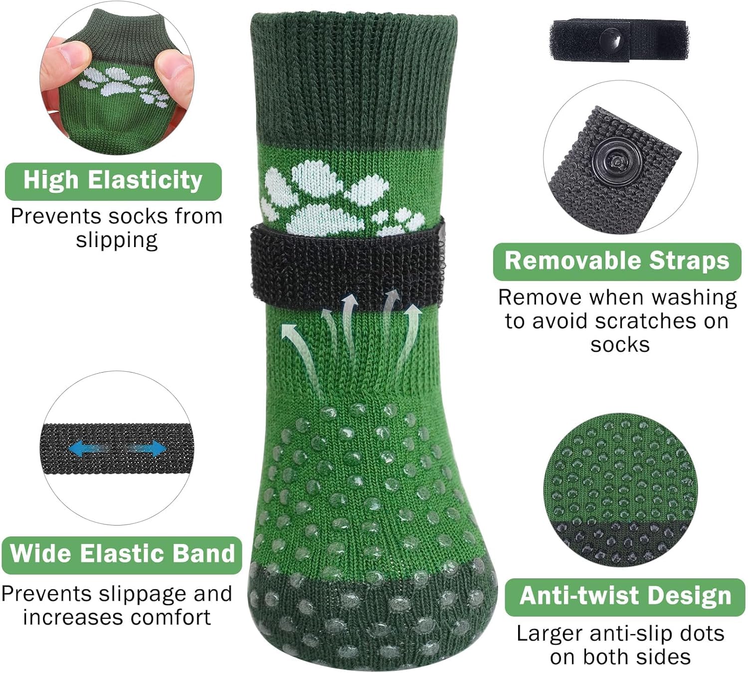 - ANTI-FALLING ELASTIC BAND DESIGN: Extra adjustable, removable waistband allows the socks to fit snugly on playful pet's paws, not easy to fall off. You can use the black elastic loops to adjust the tightness of your dog's socks (Note: Don't fix it too tight, so your dog will feel comfortable) Let your dog won't fall off even during walks or runs.