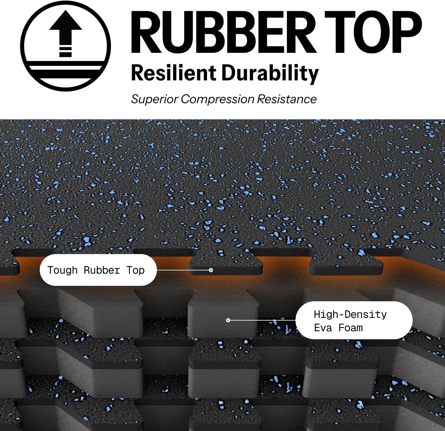 - [Upgraded Dual-Layer Design]: Concerned about your equipment scratching the floor during workouts? Our 2in1 Rubber Top EVA Foam Exercise Gym Mats are crafted to solve this issue. The textured rubber top layer, combined with a high-density EVA foam bottom layer, seamlessly creates a non-slip tough surface with excellent shock absorption.