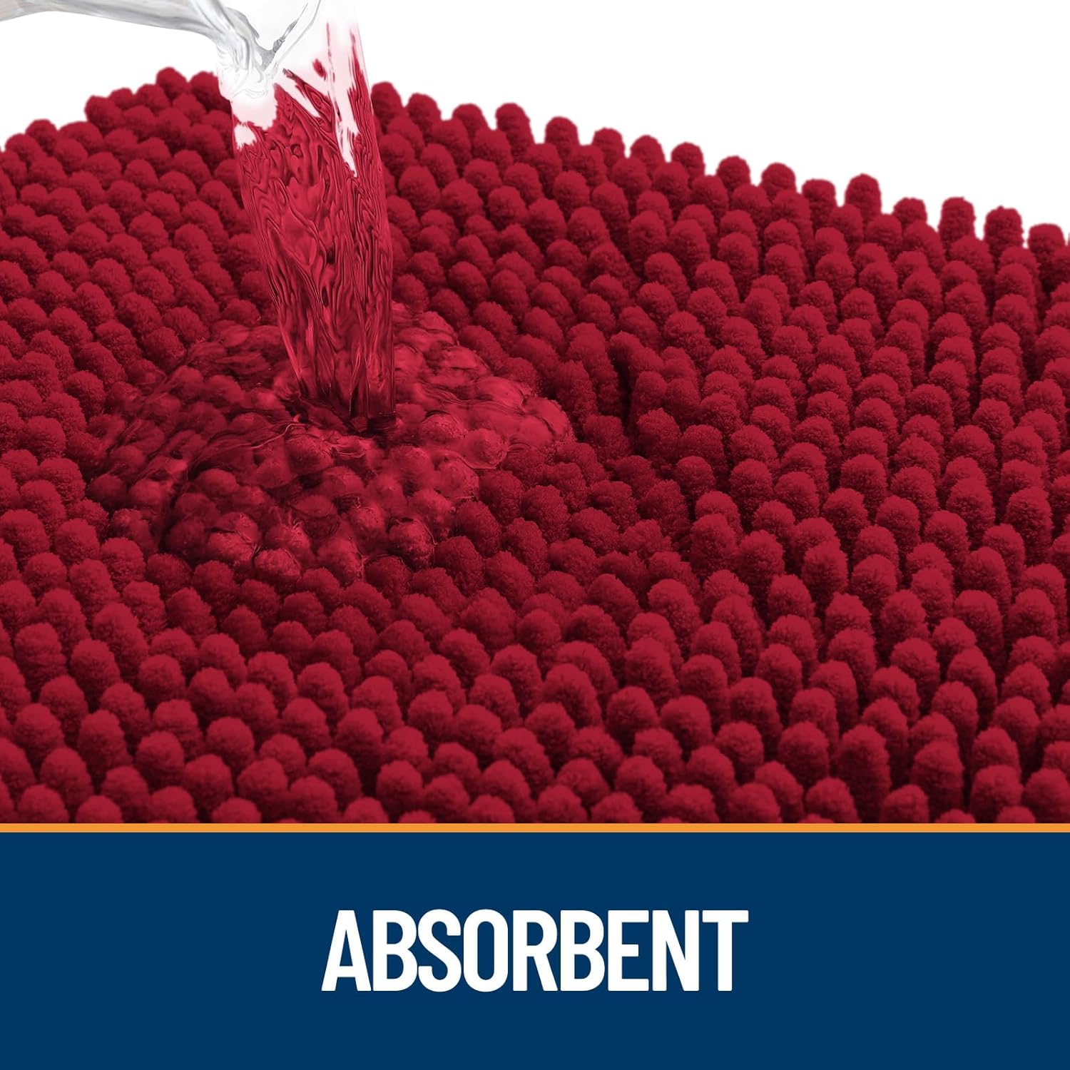 OLANLY Dog Door Mat for Muddy Paws 47x24, Absorbs Moisture and Dirt, Absorbent Non-Slip Washable Doormat, Quick Dry Chenille Mud Mat for Dogs, Entry Indoor Entryway Carpet for Inside Floor, Red