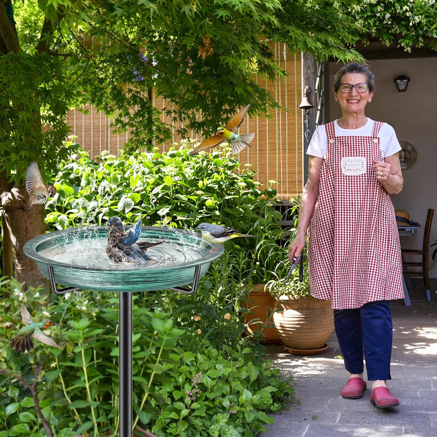 Freestanding Birdbaths Bowl Outdoor, Free Standing Garden Bird Bath Bird Feeder Bowl, Detachable Decoration Spa Birdfeeder for Garden Patio Yard Lawn