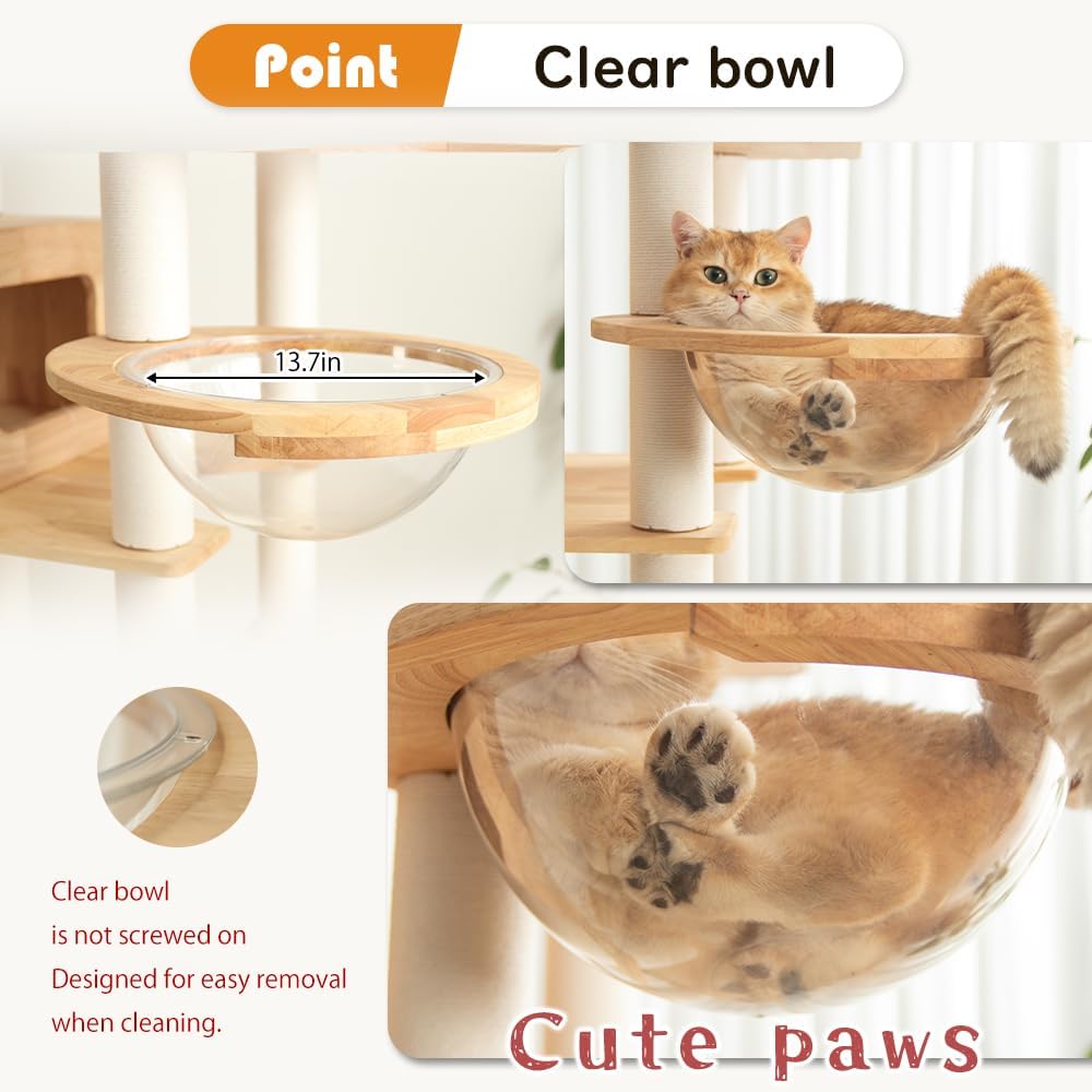 - Private Cat House & Acrylic Bubble Lounge-Includes a cozy wooden cubby with a cute cat-head opening for privacy and an acrylic bubble perch to satisfy your catβs curiosity and love for elevated views.