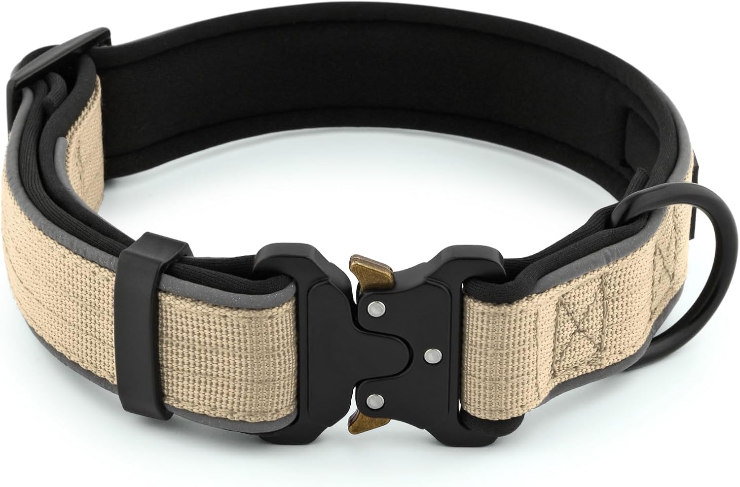 Plutus Pet Tactical Dog Collar, Reflective, Adjustable Heavy Duty Dog Collar, Soft Padded and Comfortable, for Small Medium and Large Dogs (Beige, L)