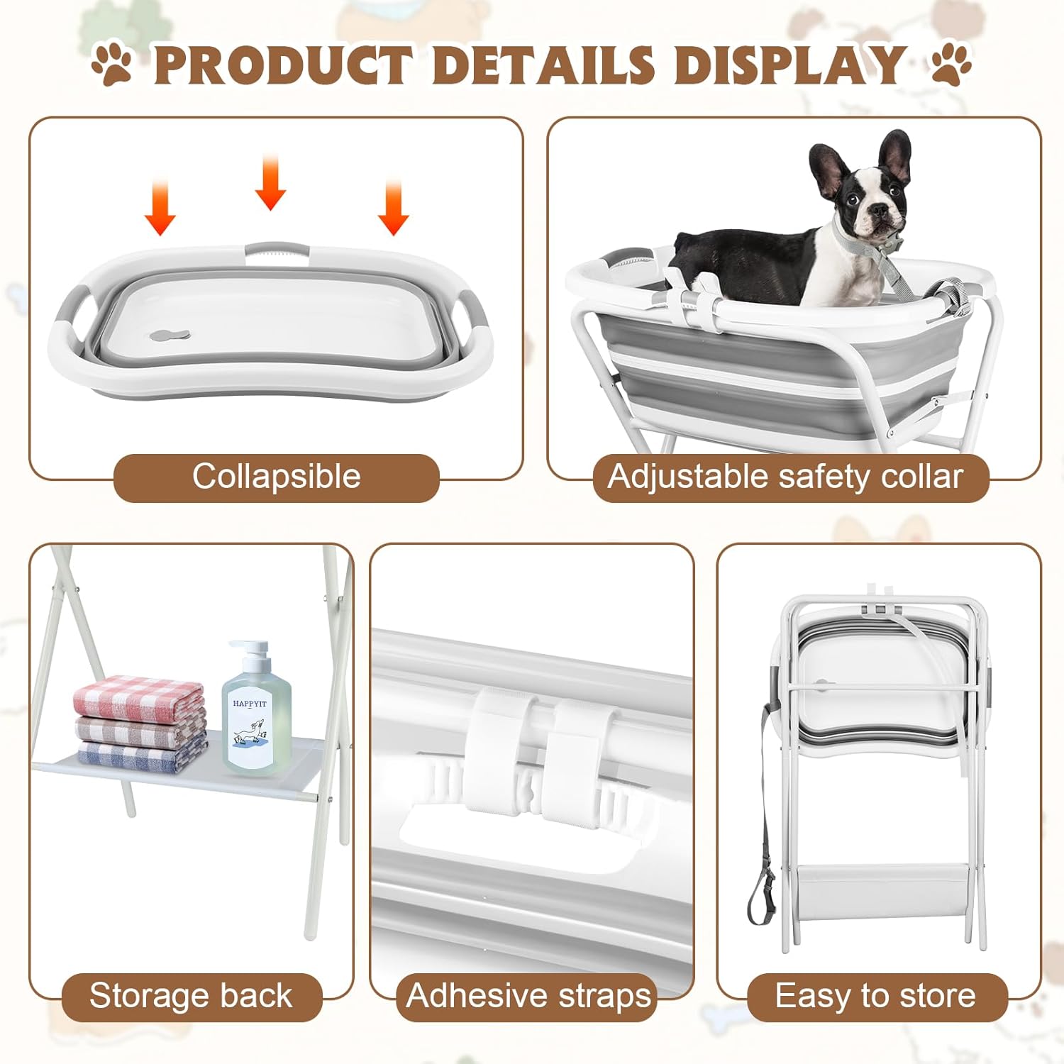 - Safety design: The dog wash tub comes with a safety collar, so that pets can better stay in the tub when bathing; While ensuring the safety of the dog, it will not dirty the floor due to the dog running around