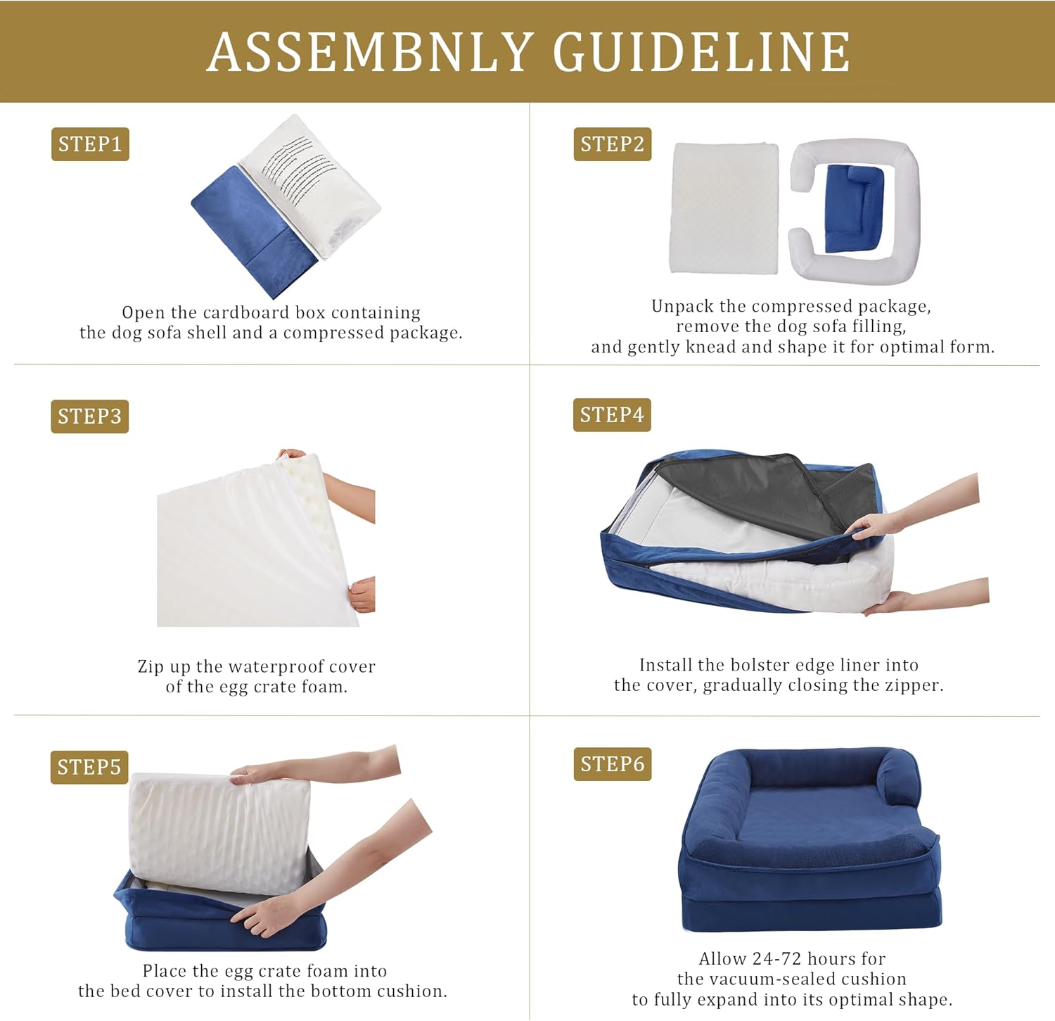 Bedfolks Orthopedic Dog Bed, Big Waterproof Dog Sofa Bed for Large Dogs, Egg Foam Pet Couch Bed with Removable Washable Cover and Nonslip Bottom, Navy Blue