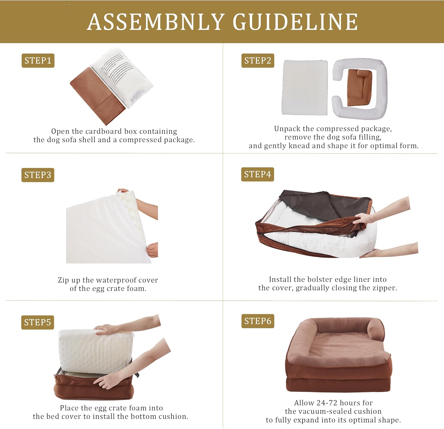 Bedfolks Orthopedic Dog Bed, Waterproof Dog Sofa Bed for Large Dogs, Egg Foam Pet Couch Bed with Removable Washable Cover and Nonslip Bottom, Brown