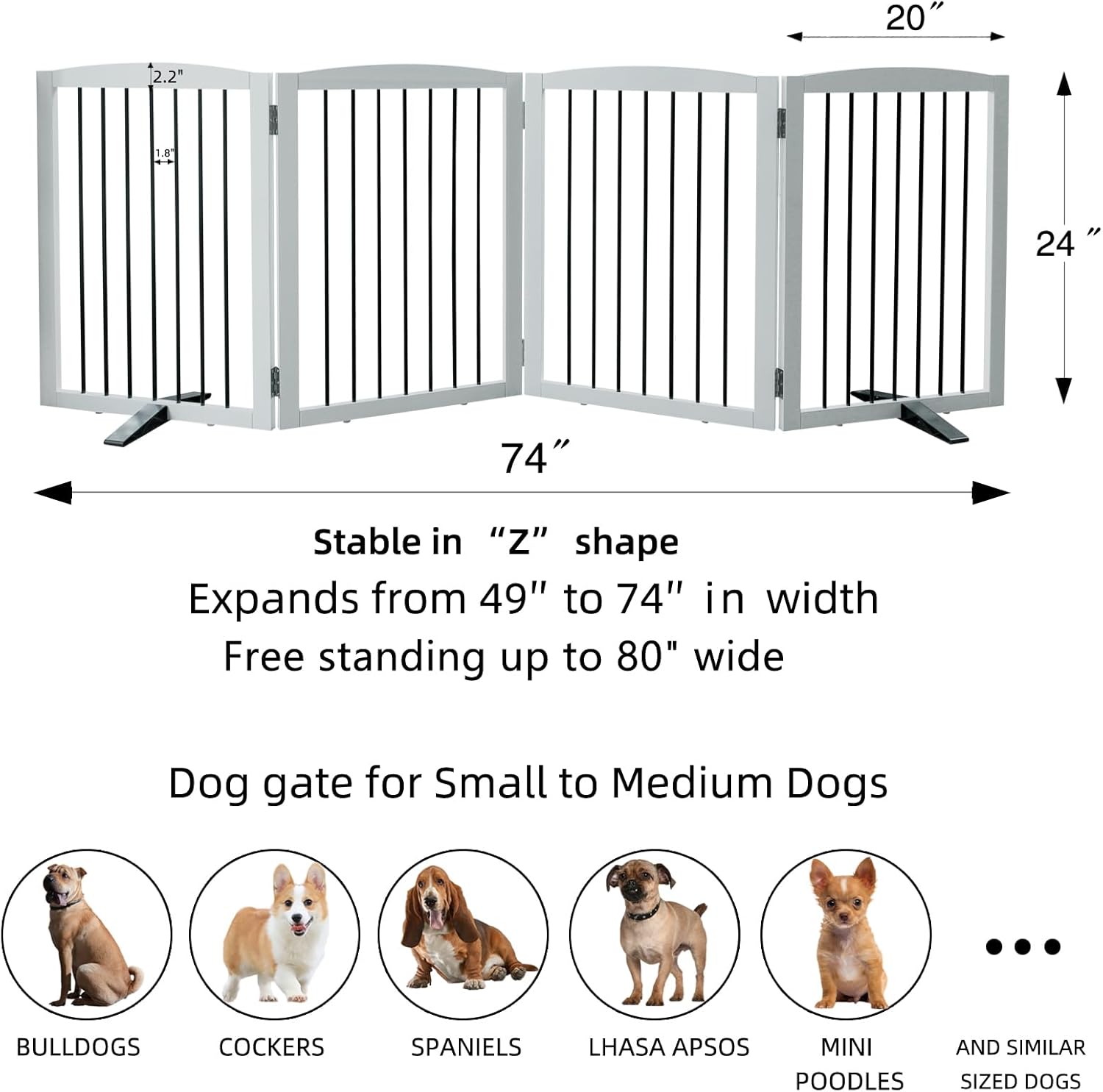 Freestanding Panel Dog Gate for Indoor, Doorways, Stairs, or Hallways - Foldable Wooden Pet Fence With Support Feet - 24" Height, 4 Panels, White