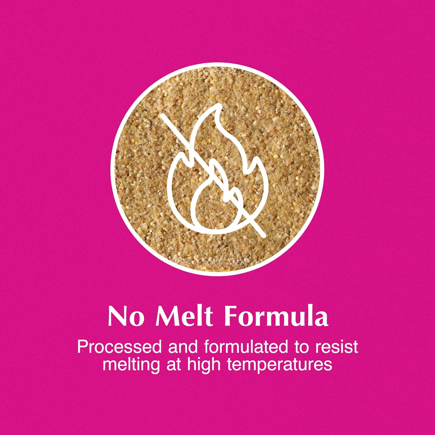 - YEAR-ROUND FEEDING, no melt suet has a soft dough texture and stays solid up to 100Β°F, making it perfect for warm-weather feeding without the mess