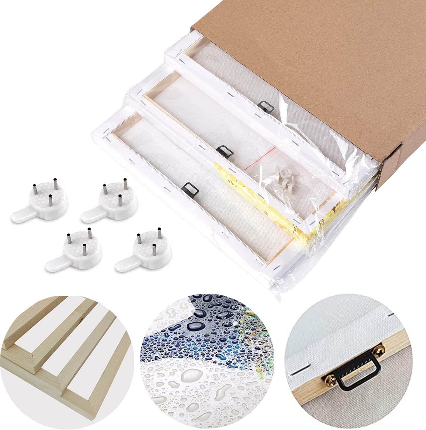 - each panel of zen decor canvas prints already stretched and framed, ready to hang. A strong hook is already fixed on each wooden inner frame for easy hanging out of box. edges are painted and each panel is wrapped by plastic bag with folded