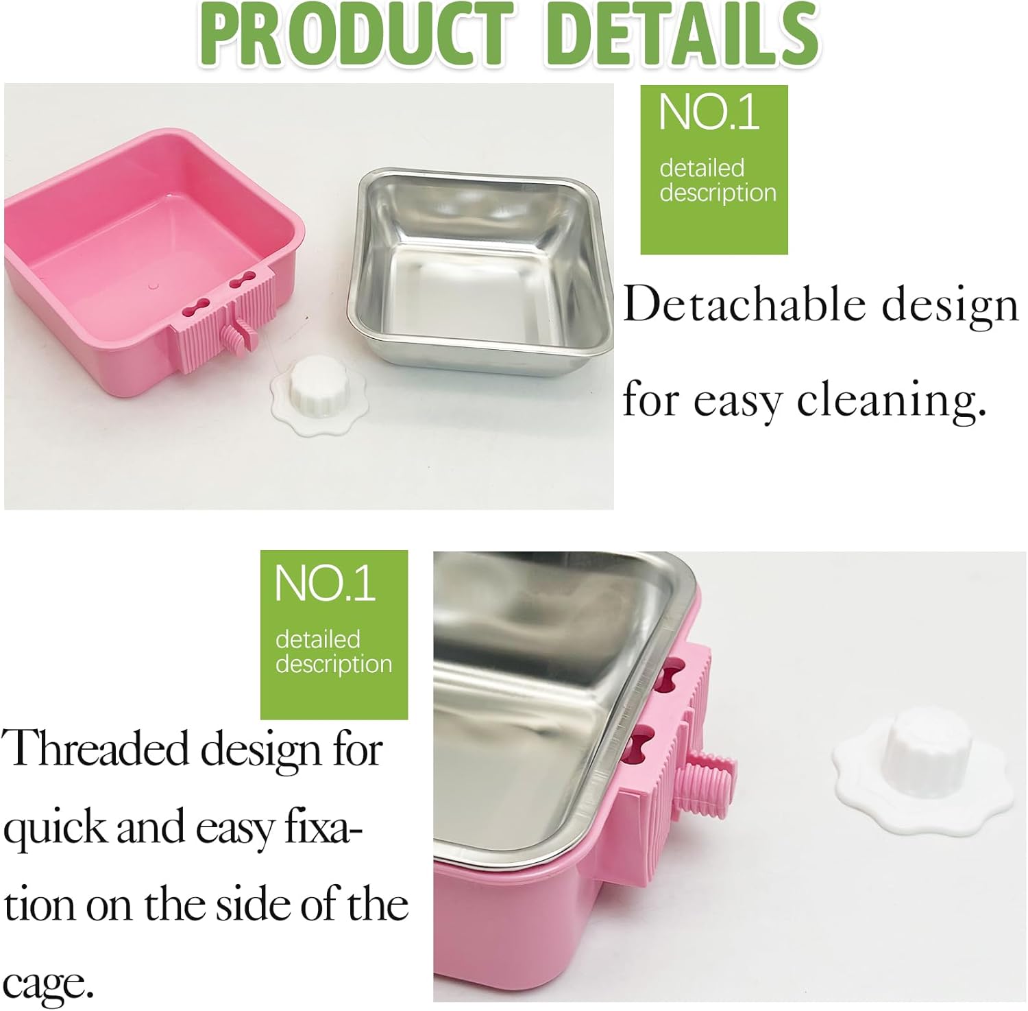 - EASY TO INSTALL: Remove the white plastic lock by rotating counterclockwise, put the plastic dog bowl on the crate. Install the pink plastic dog bowl in the correct position, rotate clockwise the white plastic lock and tighten it, that's all.
