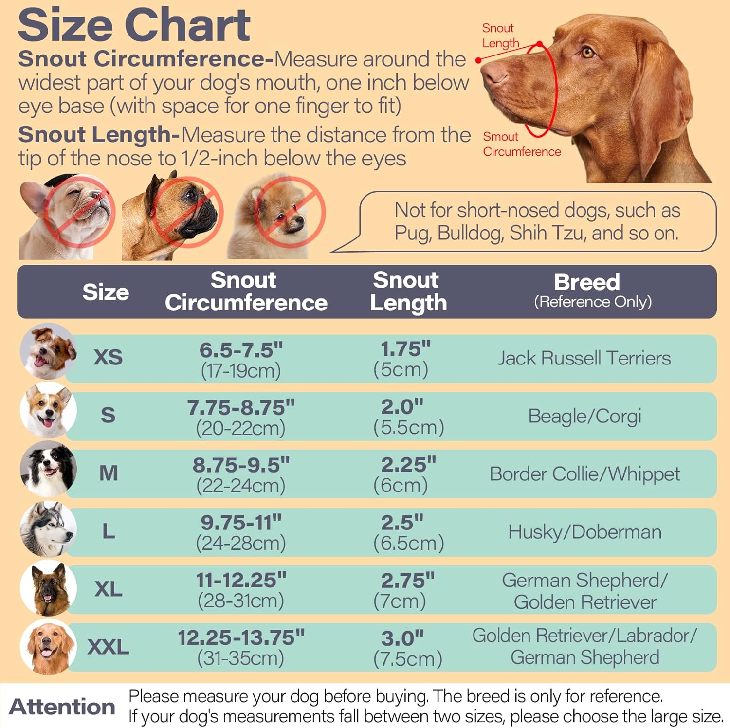 - Customizable Fit-This no bite muzzle for dogs allows for easy and precise fitting with a wide adjustment range at the top of the nose. You can effortlessly adjust the tightness to suit the shape of your dog's nose, ensuring a snug and comfortable fit