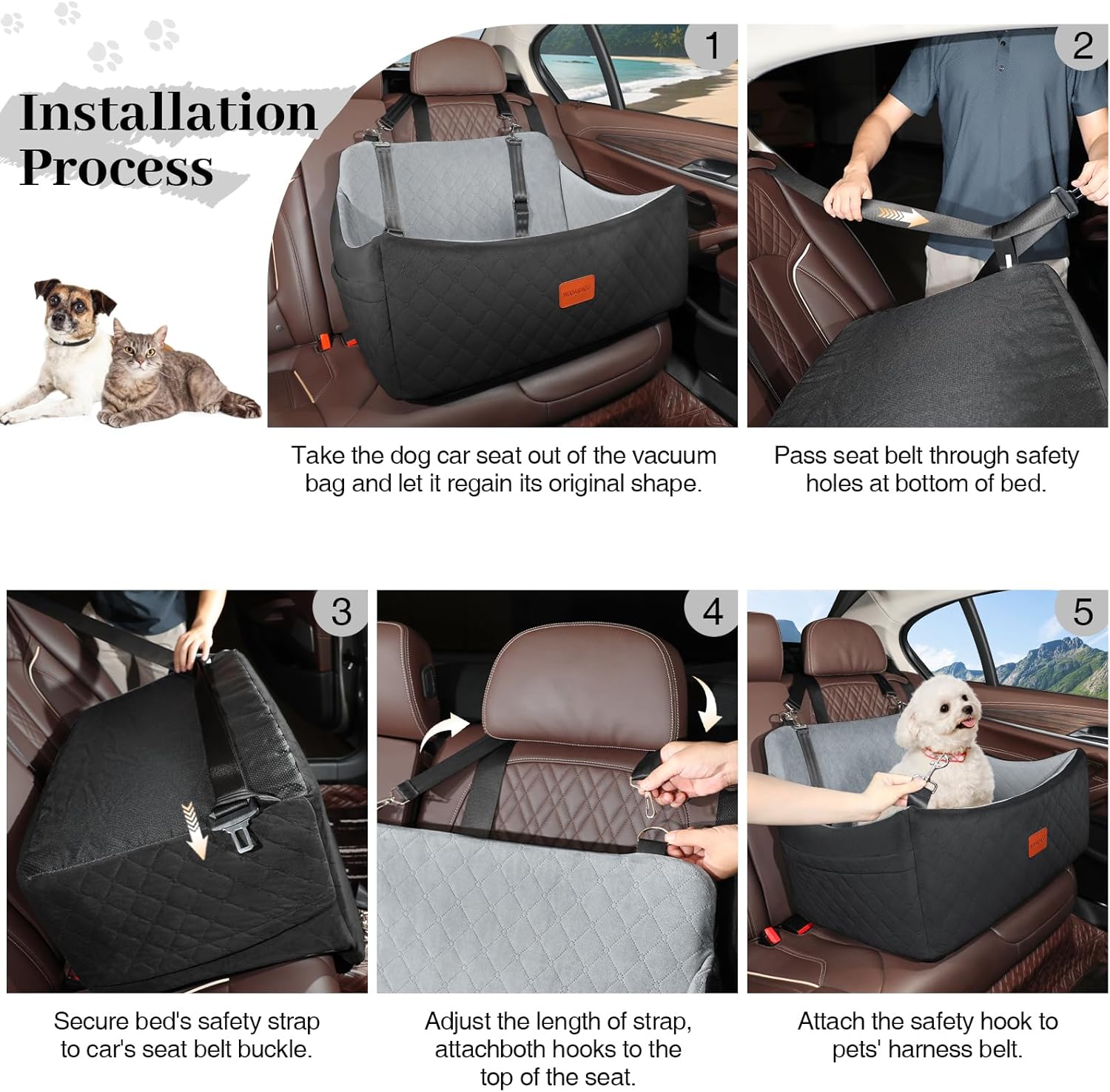 - Enhanced Safety β Designed with 3 adjustable safety straps, dual safety belt loops, and a non-slip bottom, this dog car seat keeps your pet securely in place while preventing distractions, ensuring a safe ride for both pets and drivers