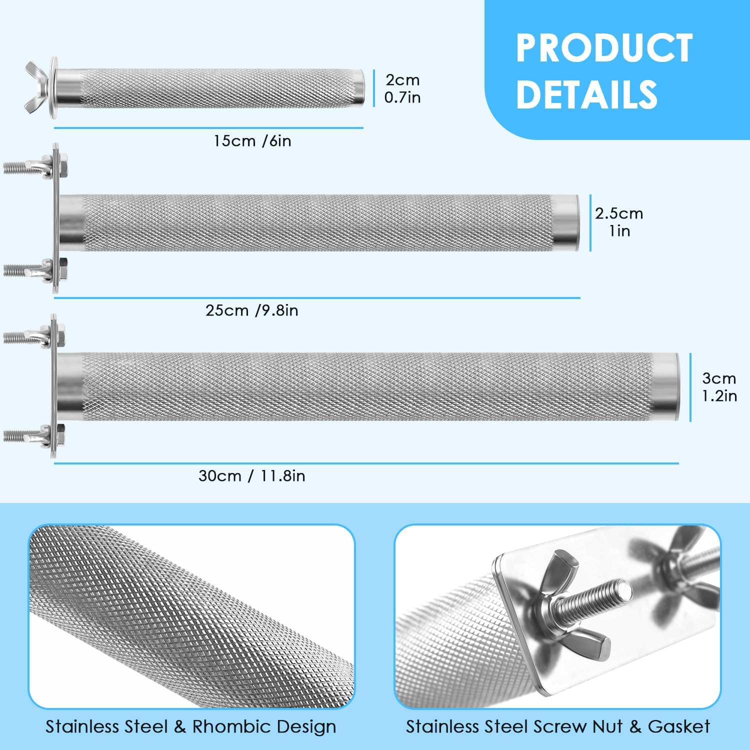 - Versatile Perch Stand: This stainless steel parrot perch with a rough surface provides an ideal spot for small to large size birds like african gray, macaw, carrier pigeon, cockatoo, conure, parakeet to climb, play, exercise and rest.