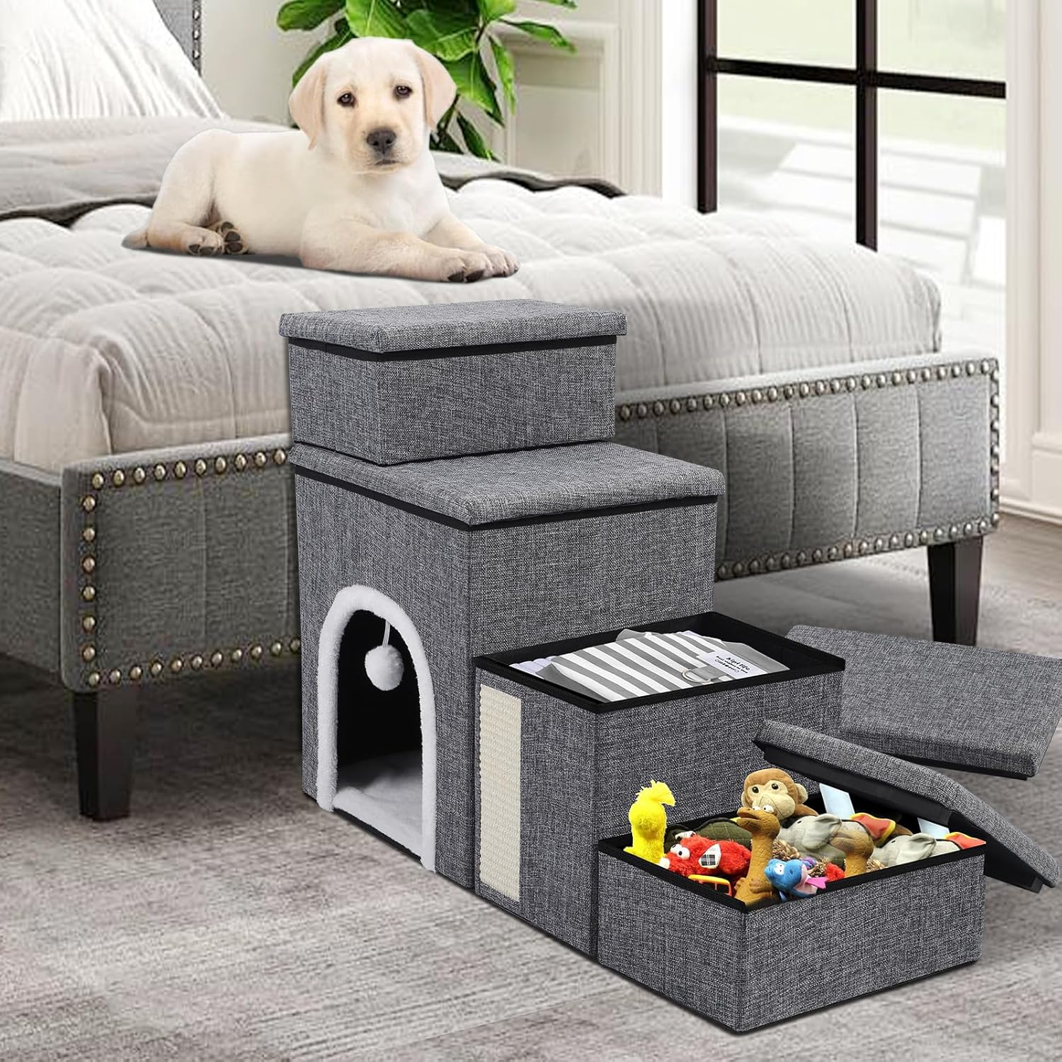 Dog Stairs for Bed and Couch 23“H, Foldable Dog Stairs for Small Older Dogs, 4 in 1 Adjustable Pet Cat Steps Ramps with Storage, Condo, Cat Scratcher, Hold Up to 180LBS, 4 Steps