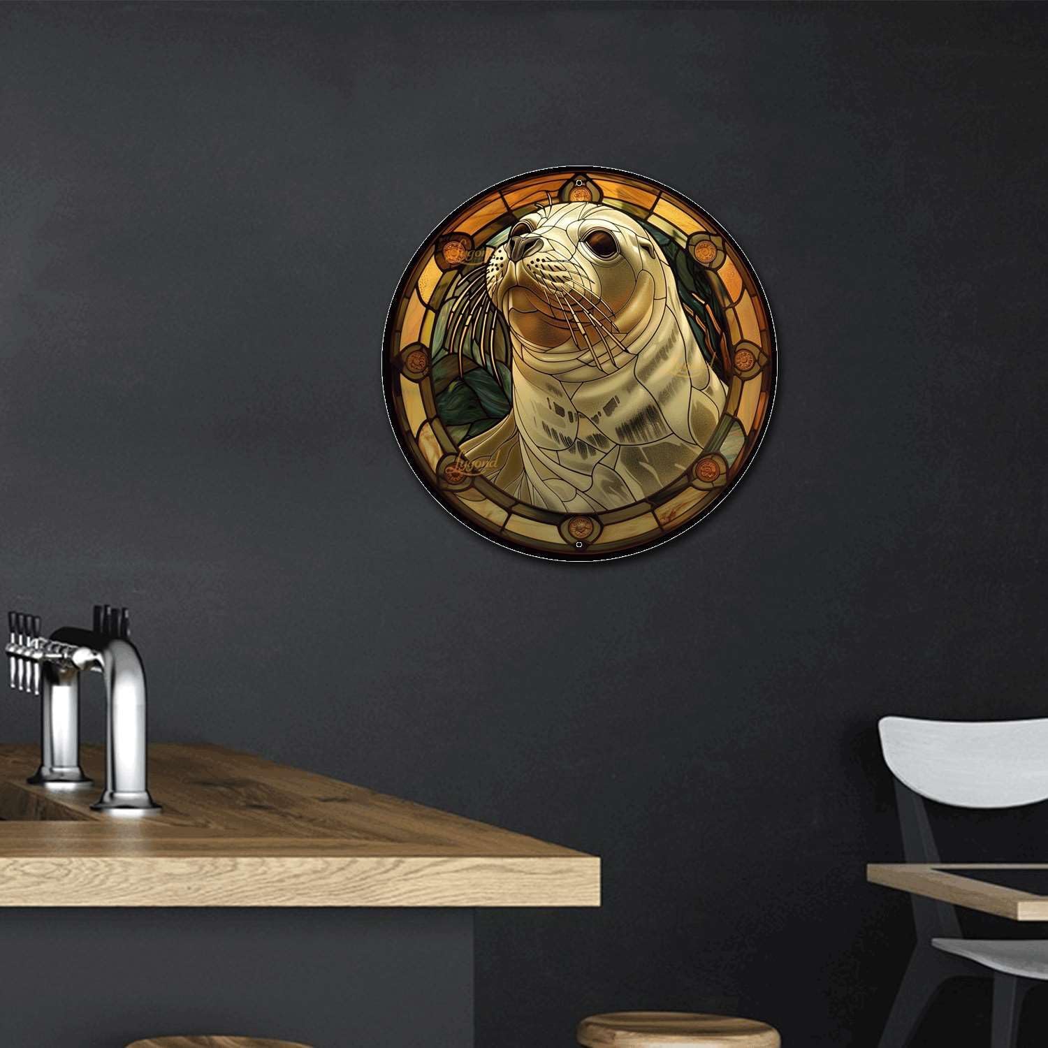 Lygond Metal Sign Tin Sign Circular Stained Glass Harbor Inspirational Wall Art for Bar 8×8 Inches