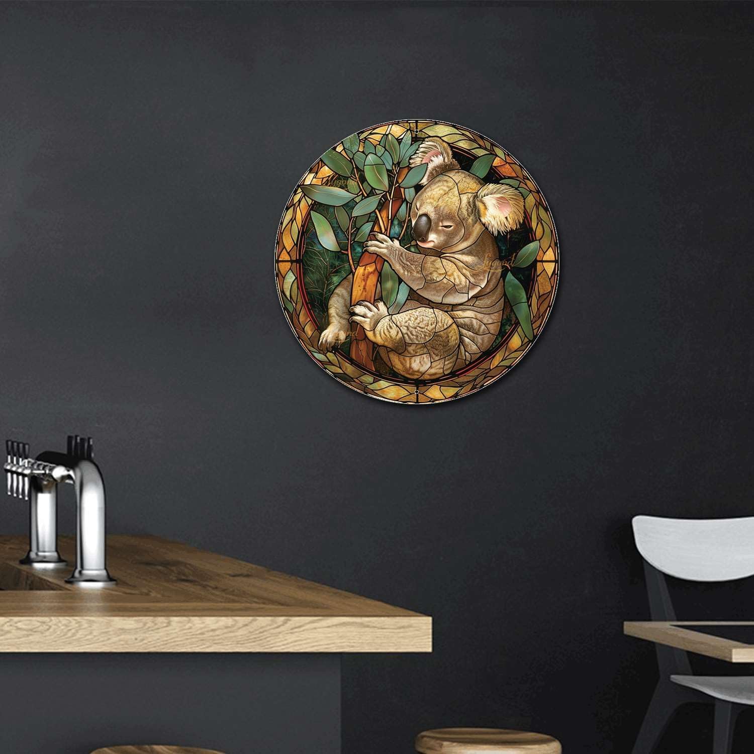 Lygond Metal Sign Tin Sign Circular Stained Glass Koala Tin Signs Gardening for Pub 12×12 Inches