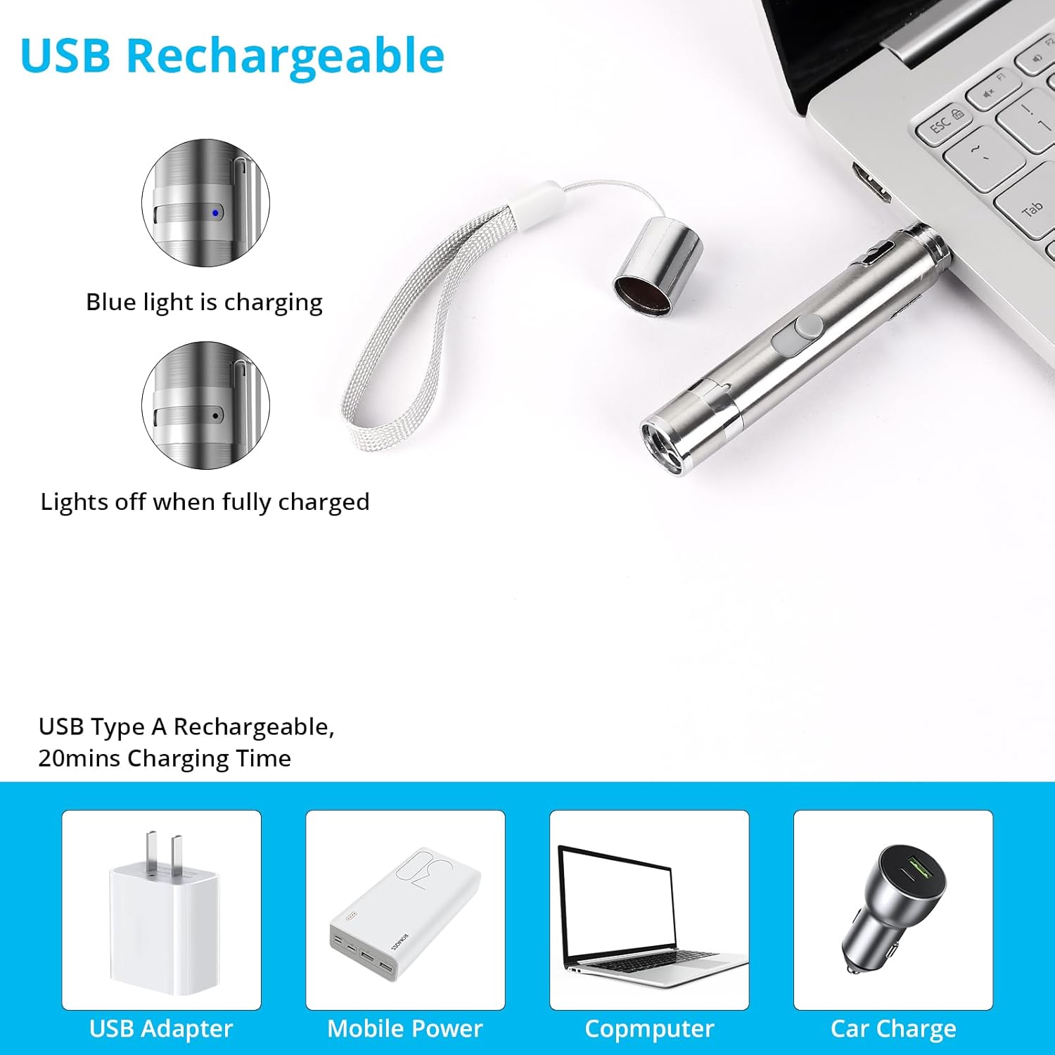 Cat Toy Pointer for Indoor Cats, 2 Pieces, USB Rechargeable Kitten Toys with 7 Adjustable Patterns, Interactive Chase Toys for Indoor Cats & Dogs, Training & Exercise Fun