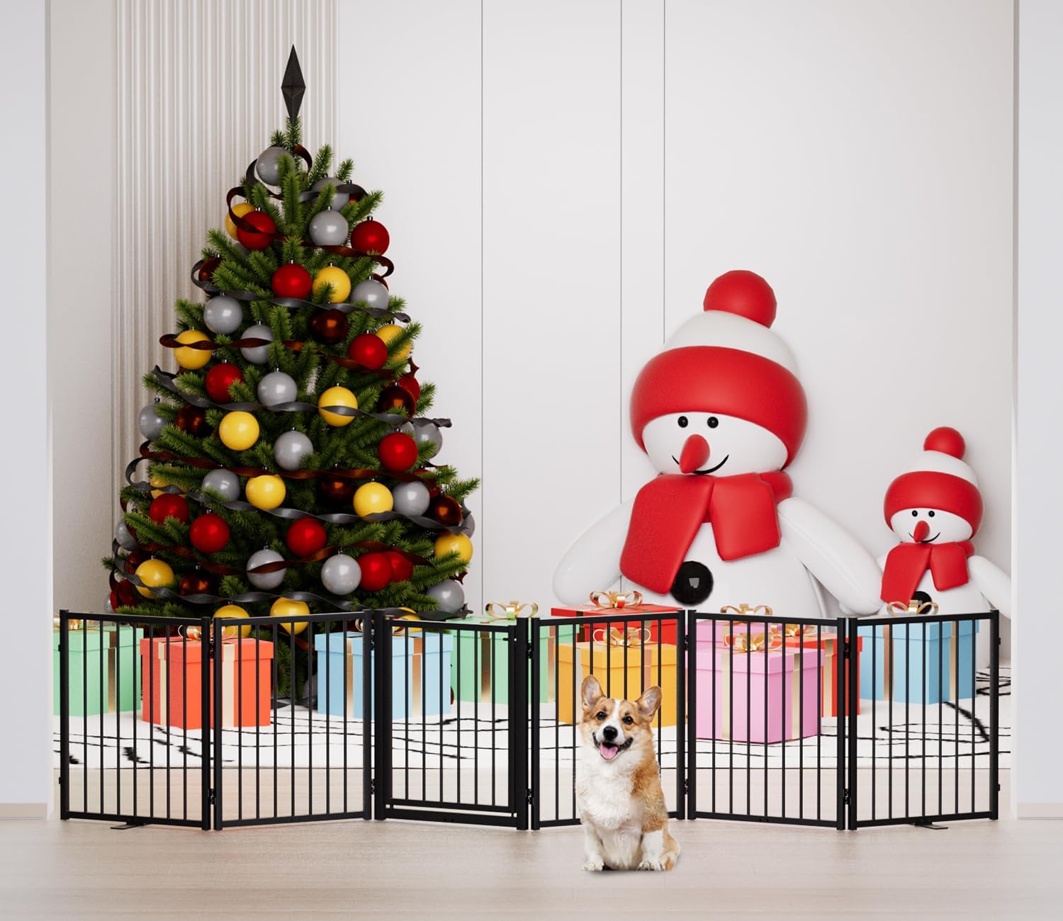 - [Versatile Sizes]: Our pet dog gate is available in 24-inch and 32-inch heights, perfect for puppies, small and medium dogs pets. Multi-choice of 2 panles, 4 panles and 6 panles, suitable for stairs, kitchens, bedroom doors, corridors and other indoor and outdoor forbidden areas.