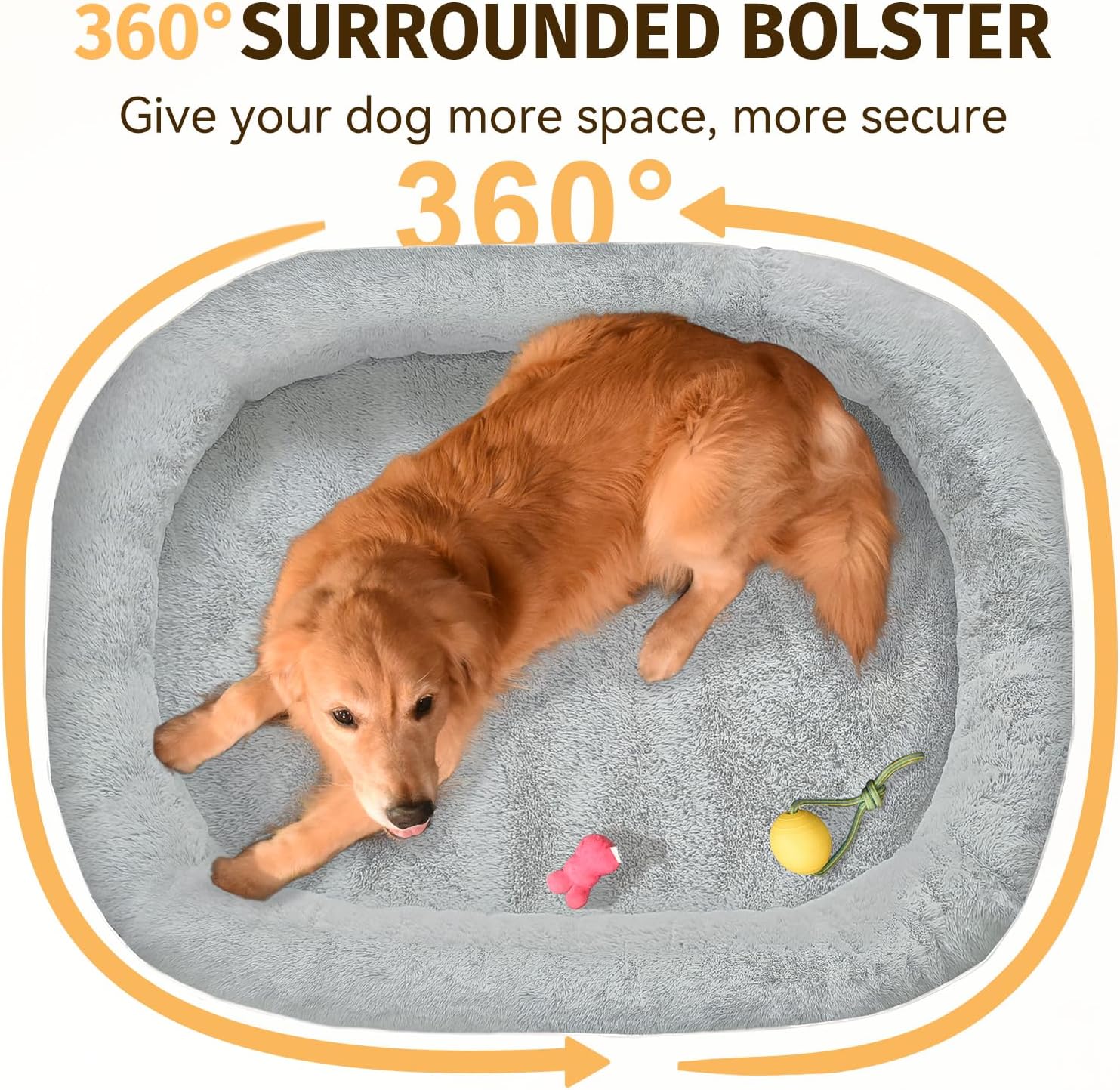 - 360Β° Surrounded Support: This 360Β° full circle design creates a secure sleeping environment, making dog bed large ideal for dogs who prefer a more enclosed space; The bolsters also served as a headrest that provides additional support for the neck and back; Whether your dog likes to curl up or stretch out, this orthopedic dog bed accommodates all sleeping positions