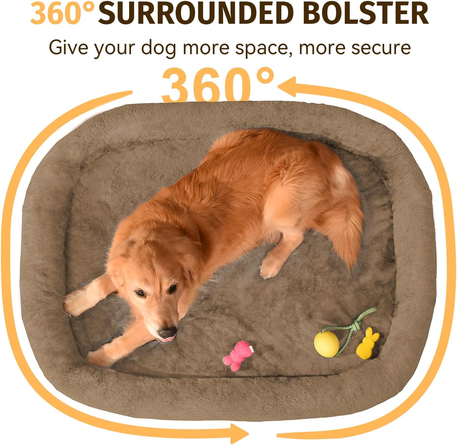 - 360Β° Surrounded Support: This 360Β° full circle design creates a secure sleeping environment, making our big dog bed ideal for dogs who prefer a more enclosed space; The bolsters also served as a headrest that provides additional support for the neck and back; Whether your dog likes to curl up or stretch out, this orthopedic dog bed accommodates all sleeping positions