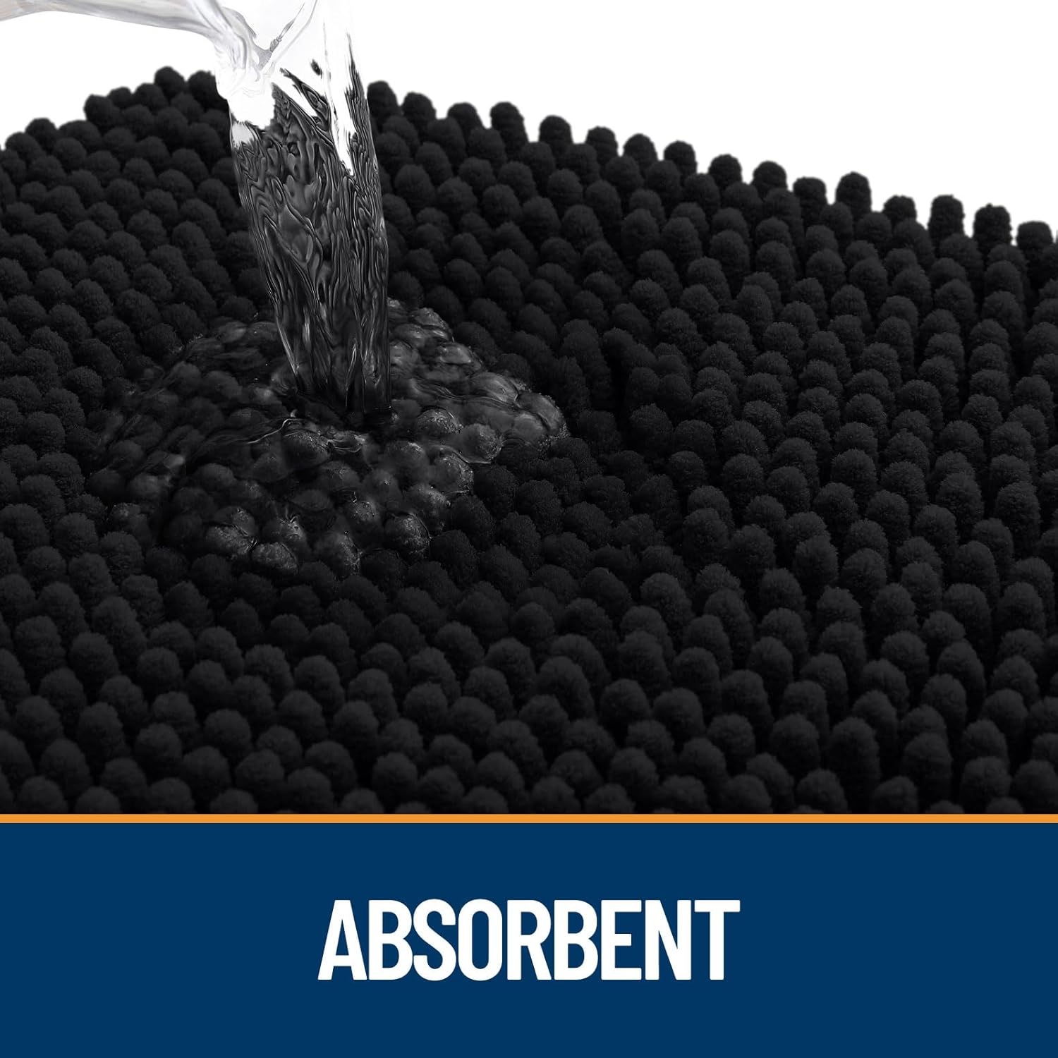 OLANLY Dog Door Mat for Muddy Paws 70x46, Absorbs Moisture and Dirt, Absorbent Non-Slip Washable Doormat, Quick Dry Chenille Mud Mat for Dogs, Entry Indoor Entryway Carpet for Inside Floor, Black