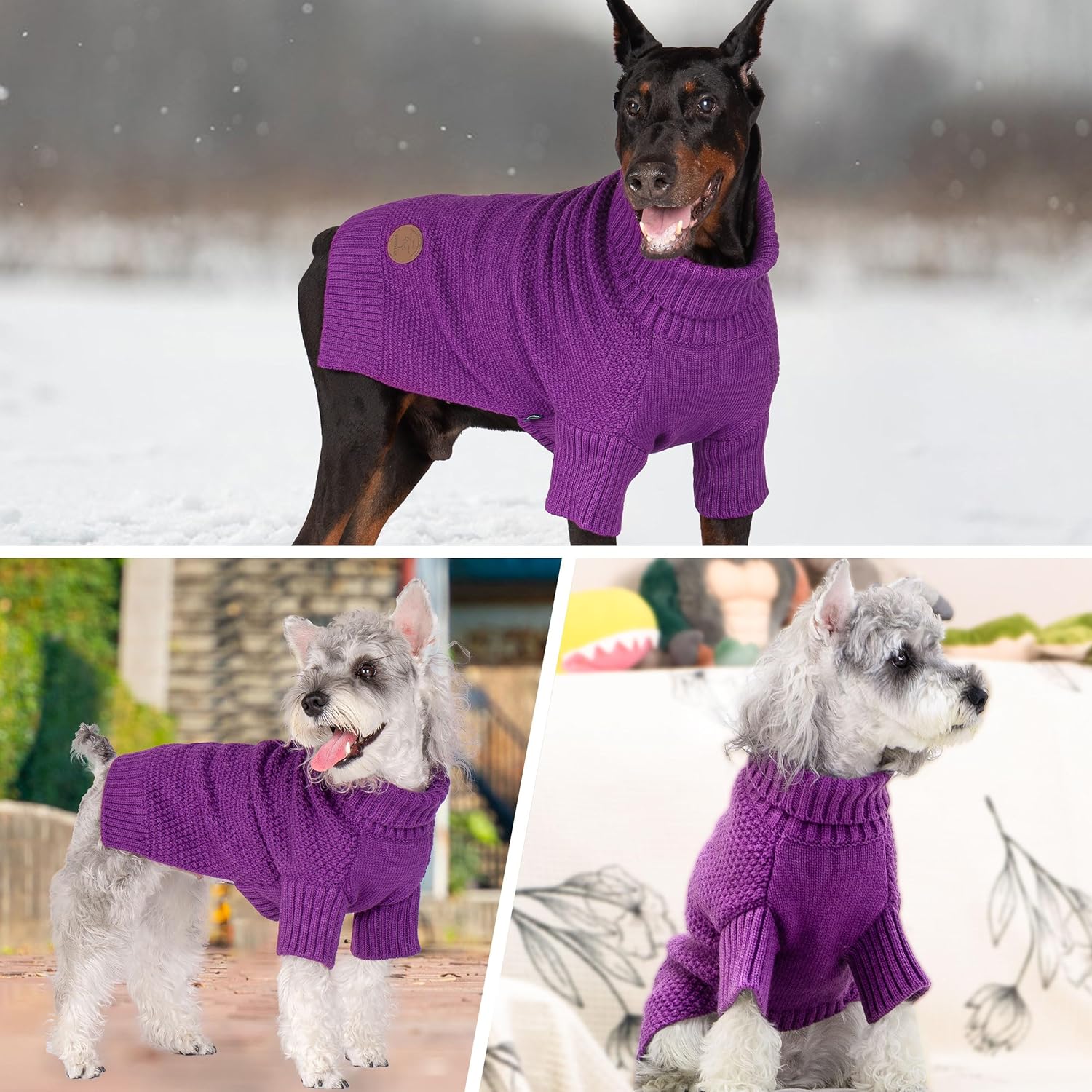 cyeollo Dog Sweater Pullover Turtleneck for Large Dogs, Classic Knitwear Fall Winter Cold Weather Dog Clothes Warm Pet Apparel Large Big Dogs Sweaters, Purple 3XL
