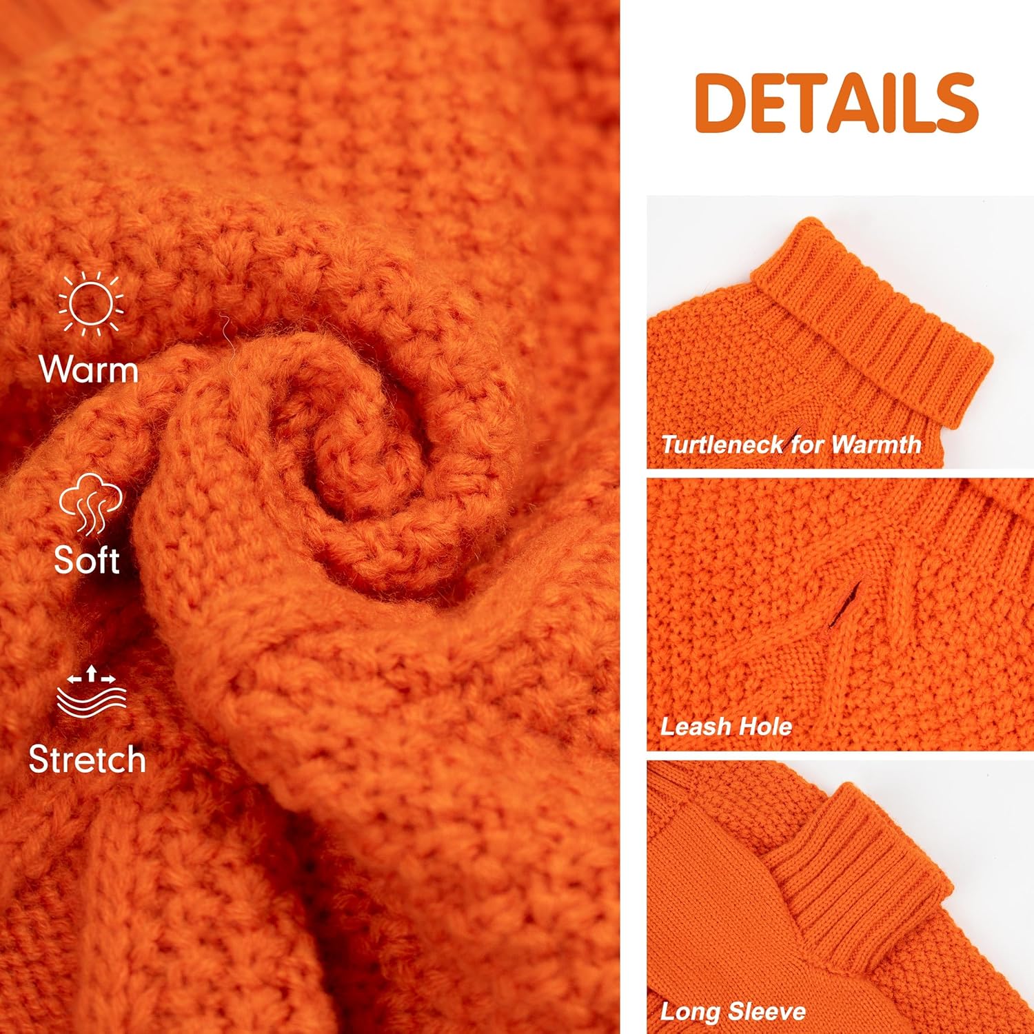 cyeollo Dog Sweater Pullover Turtleneck for Dogs, Classic Knitwear Fall Winter Cold Weather Dog Clothes Warm Pet Apparel Small Medium Large Doggie Sweaters, Orange S