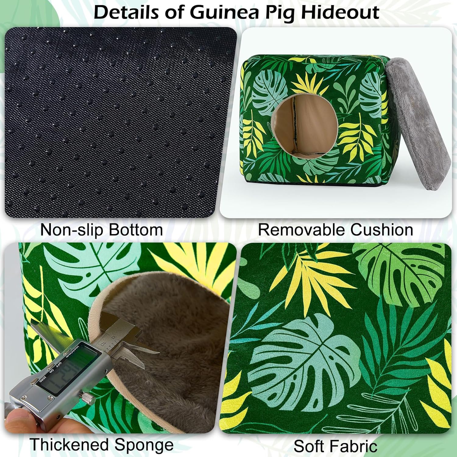 Bienbee Guinea Pig Hideout, Washable Guinea Pigs House Cozy Guinea Pigs Bed for Small Pet Bunny/Rabbit/Hamster/Chinchilla Guinea Pig Accessories Green Leaf