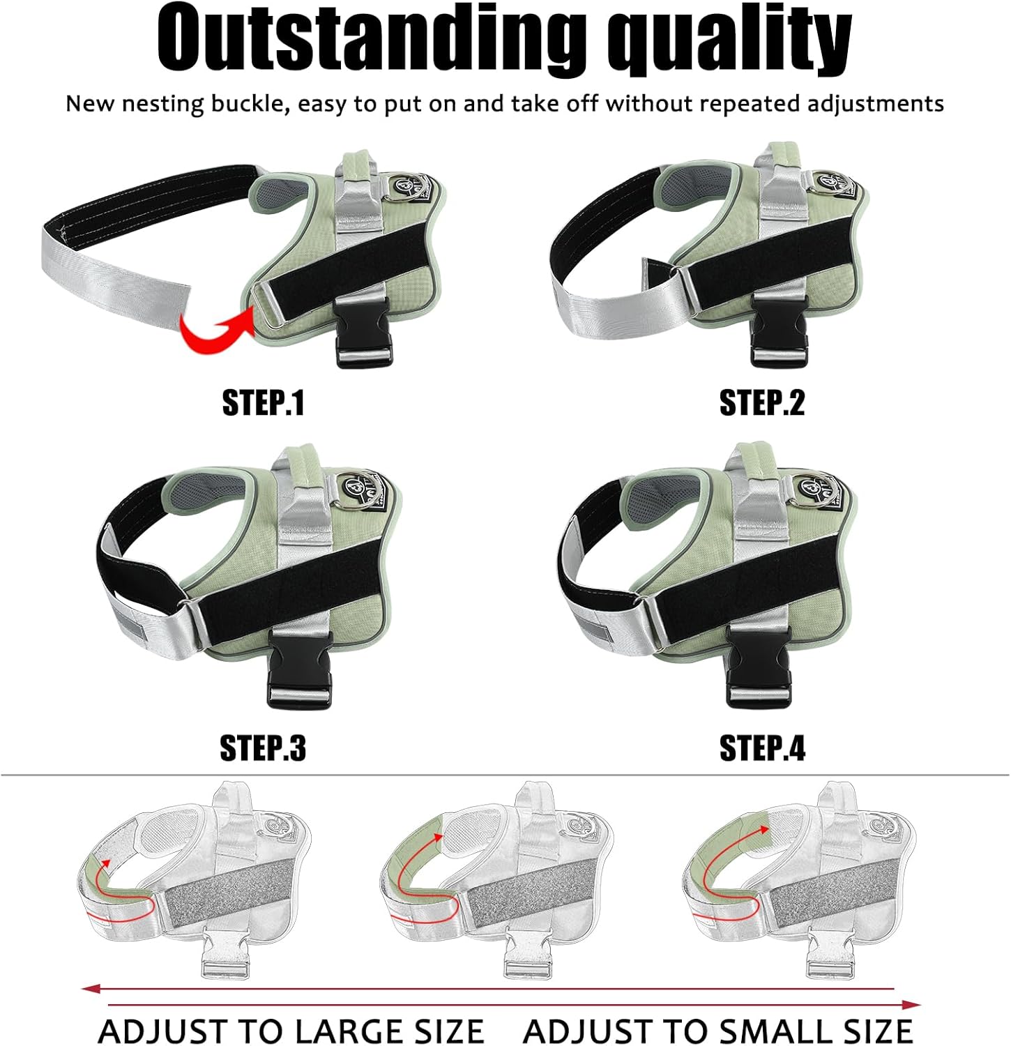 - STURDY HANDLE: The adjustable dog harness with rugged nylon handle further enhances your distance from the dog and is more intimate with each other. Easy on dog harness is also the best partner for dogs and is easy to control your dog.