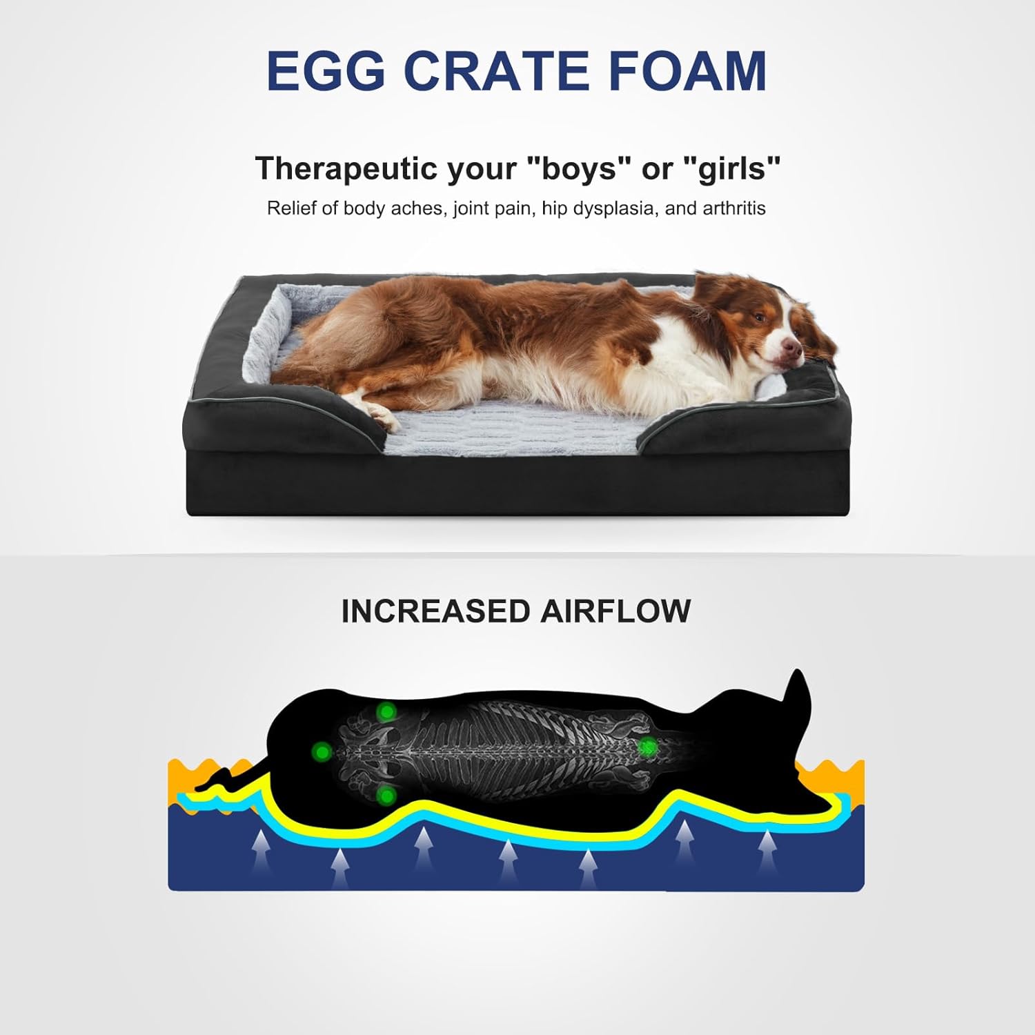 FURTIME Orthopedic Dog Bed for Extra Large Dogs - XL Plus Waterproof Dog Sofa Beds, Supportive Foam Pet Couch Bed with Removable Washable Cover, Waterproof Lining and Nonskid Bottom, Black