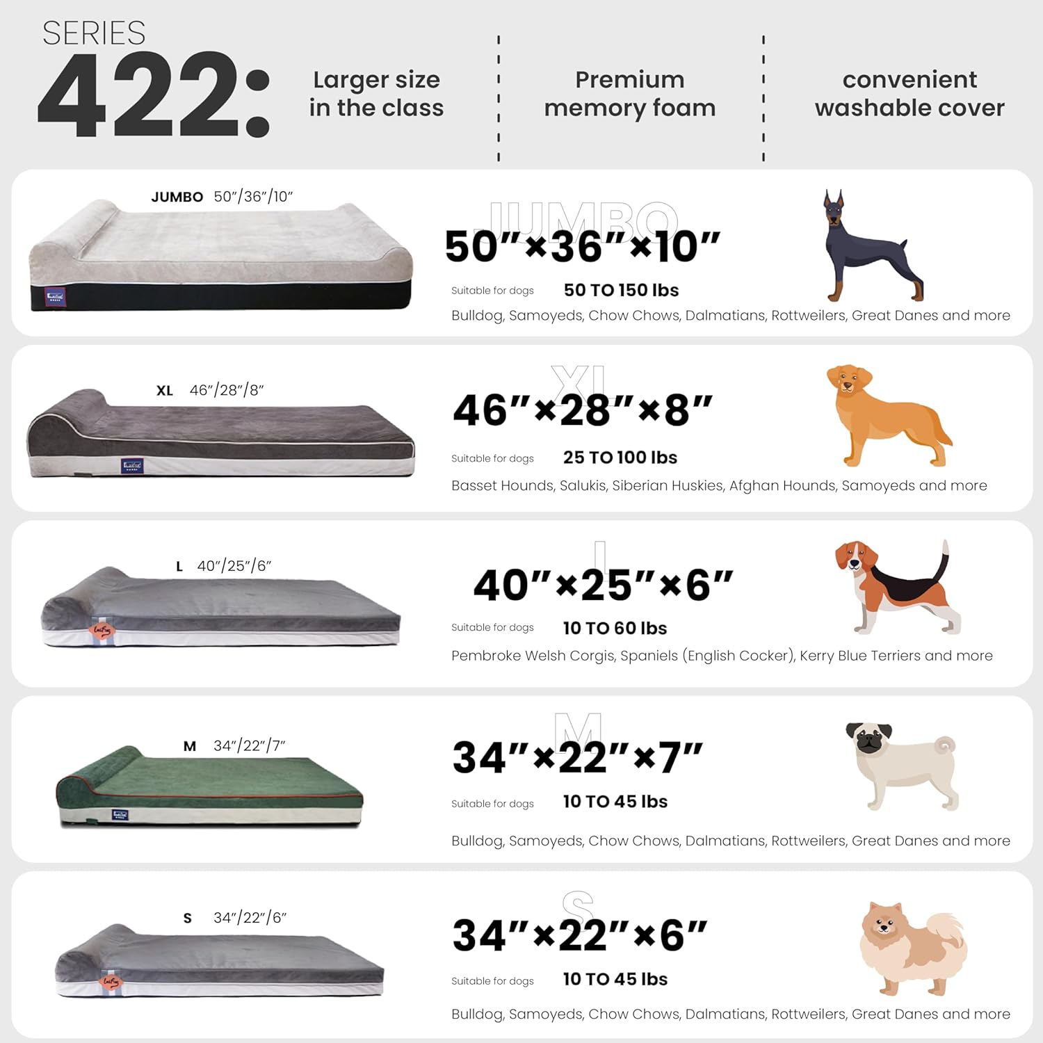 - Multi-Layered Sponge: The combination of high-density sponge support material on the bottom and comfortable premium memory foam on the top can keep your dog off the hard floor below while supporting and cushioning their body, can hold dogs within 25-100 lbs . Holds on easily without sinking, making it your pet's favorite sleeping spot.