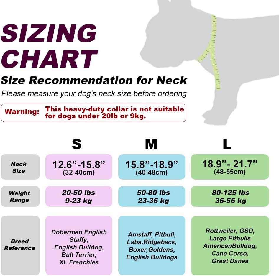 - Metal Collar for Dogs: The dog collars for medium dogs and large dogs with 4 adjustable points, easy to adjust the comfortable fit and attach to dog leash or dog collar. Please follow the size chart to measure your dog carefully before purchasing to ensure the halloween collar for dogs or christmas collar for dogs are fit well to your dog. For dog neck (L: 18.9β-21.7β, M: 15.8β-18.9β, S: 12.6β-15.8β)