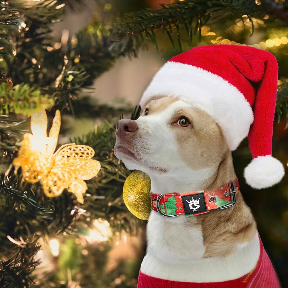 TSPRO Tactical Dog Collar 1.5 Inch Wide Thick Dog Collars with Heavy Duty Metal Buckle, Durable, Strong, Adjustable for Medium to Large Dogs (Christmas Red M)