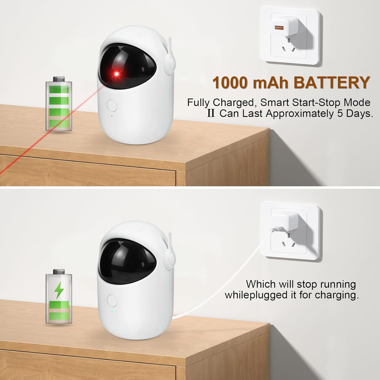 - [ Quiet design ]:The quiet design of the automatic cat laser toy reduces noise pollution and enhances the comfort of home life. It also reflects the humanization and high-quality pursuit in modern pet toy design.