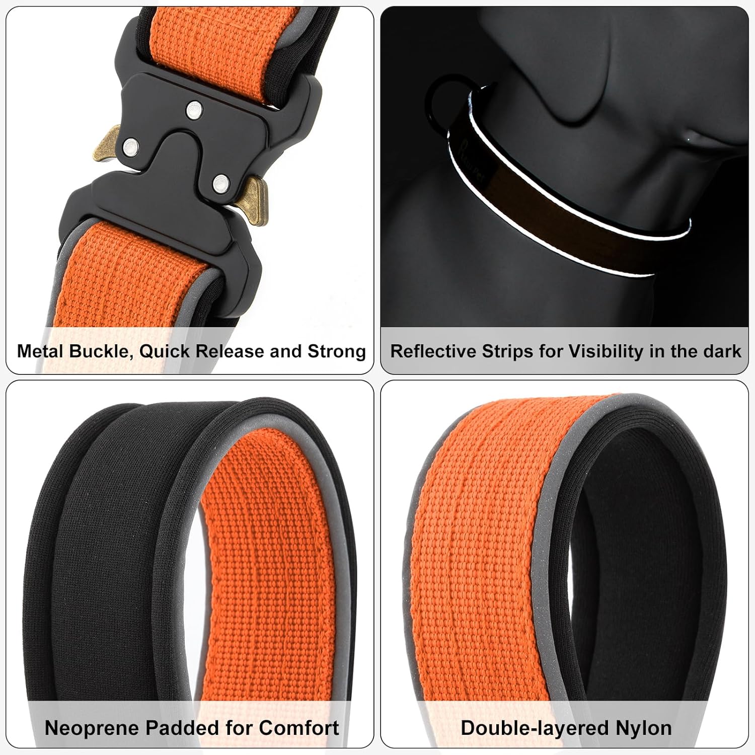 Plutus Pet Tactical Dog Collar, Reflective, Adjustable Heavy Duty Dog Collar, Soft Padded and Comfortable, for Small Medium and Large Dogs (Orange, S)