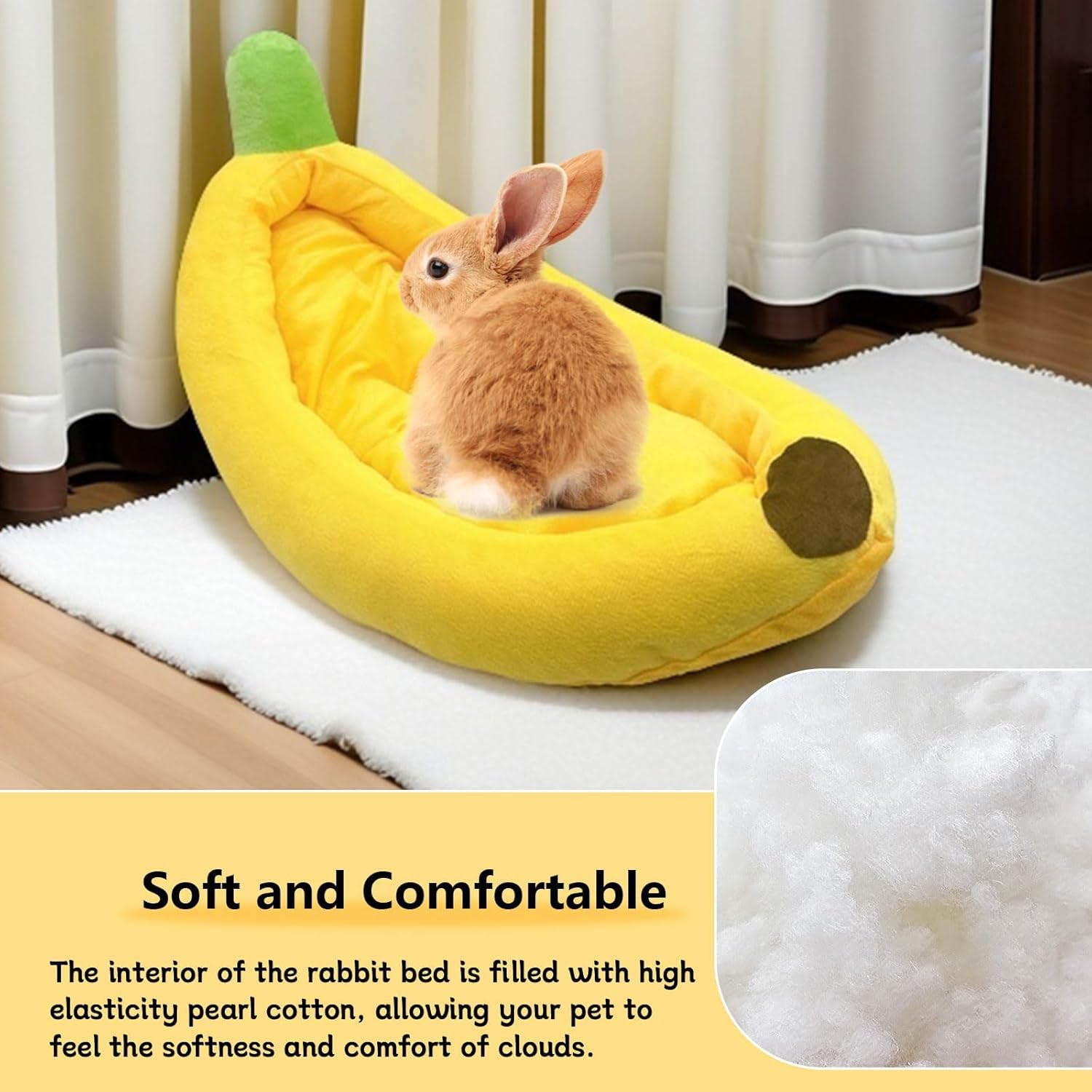 - π[Cartoon Design] Banana shaped small animal bed is cute and vivid, brighten up your home space and touch your heart with your beloved pet. This pet bed is not only suitable for rabbits, but also ideal for guinea pigs, chinchillas and other small pets. You can place it in the cage, on the floor, on the sofa or any indoor space to create a cozy resting place for your pet.