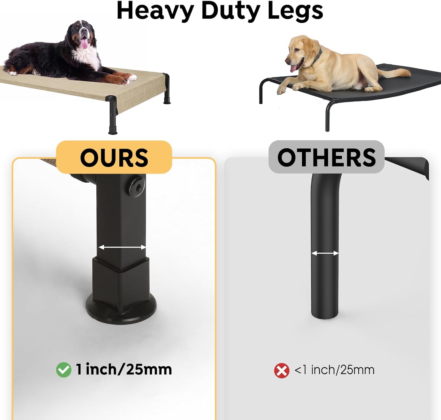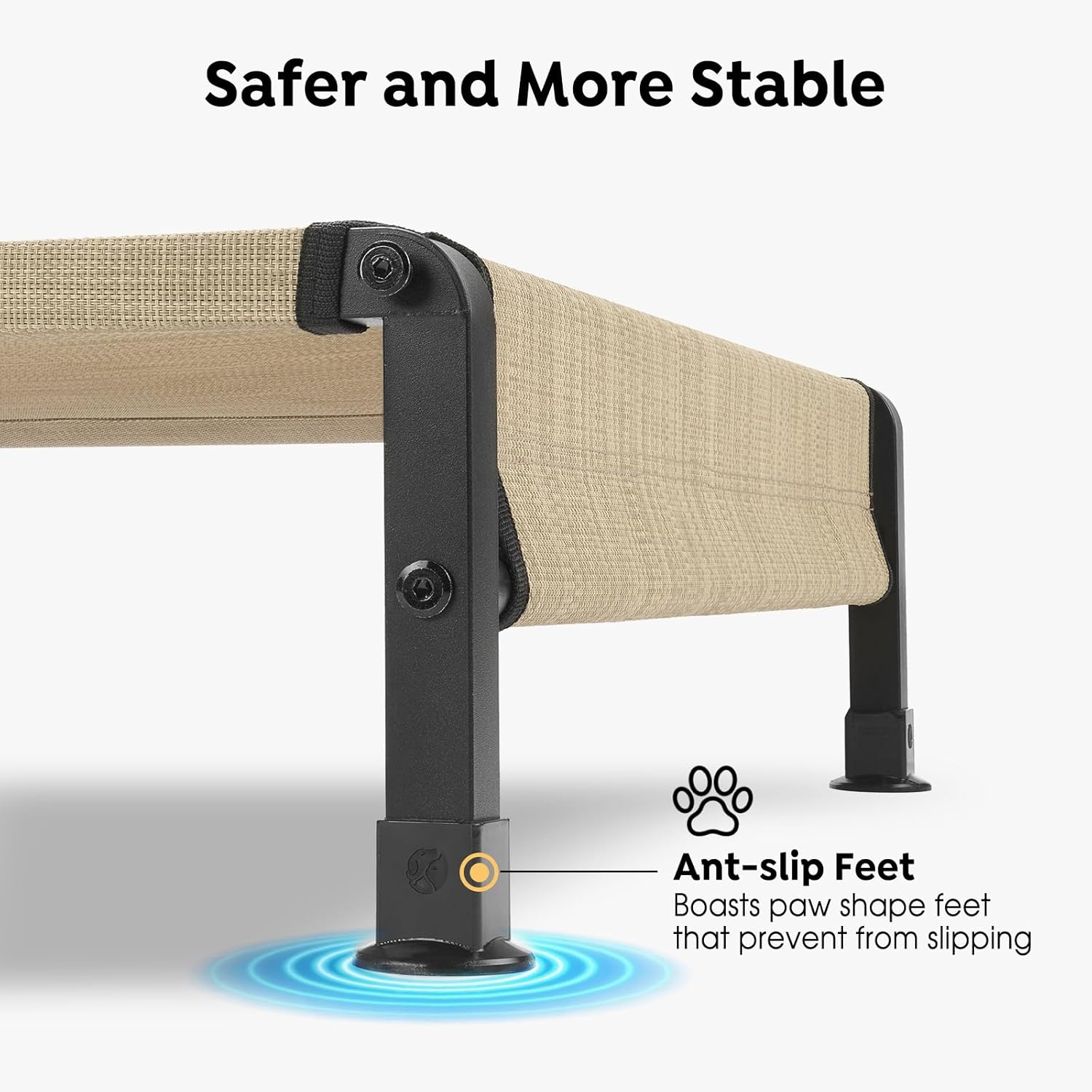 - Enhanced Durability: One Piece Tubing Sturdy Design resists bending, and the heavy-duty frame is thicker than other normal beds, ensuring lasting durability. With anti-slidding silicon feet, this elevated pet bed offers superior stability, making it a safe and reliable choice for even the most active pets.