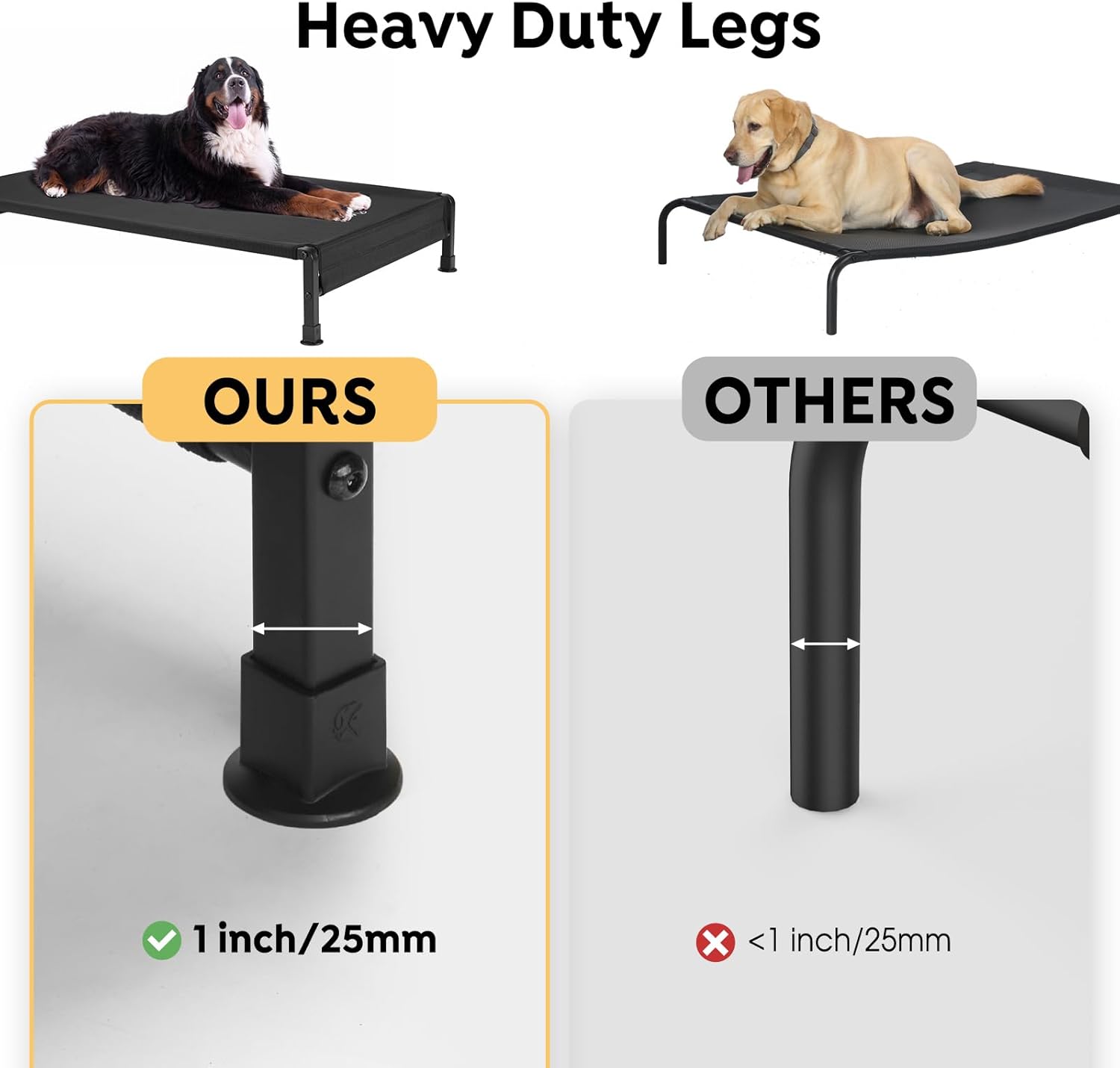- Enhanced Durability: One Piece Tubing Sturdy Design resists bending, and the heavy-duty frame is thicker than other normal beds, ensuring lasting durability. With anti-slidding silicon feet, this elevated pet bed offers superior stability, making it a safe and reliable choice for even the most active pets.