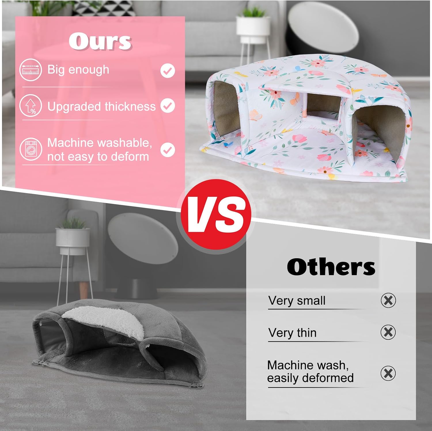 - Machine Washable: The guinea pig hideout is made of short plush and high-density elastic sponge; Not only is it very soft to the touch, but also more comfortable and warm, the fabric is thick enough to hold its shape and stay upright after many washes