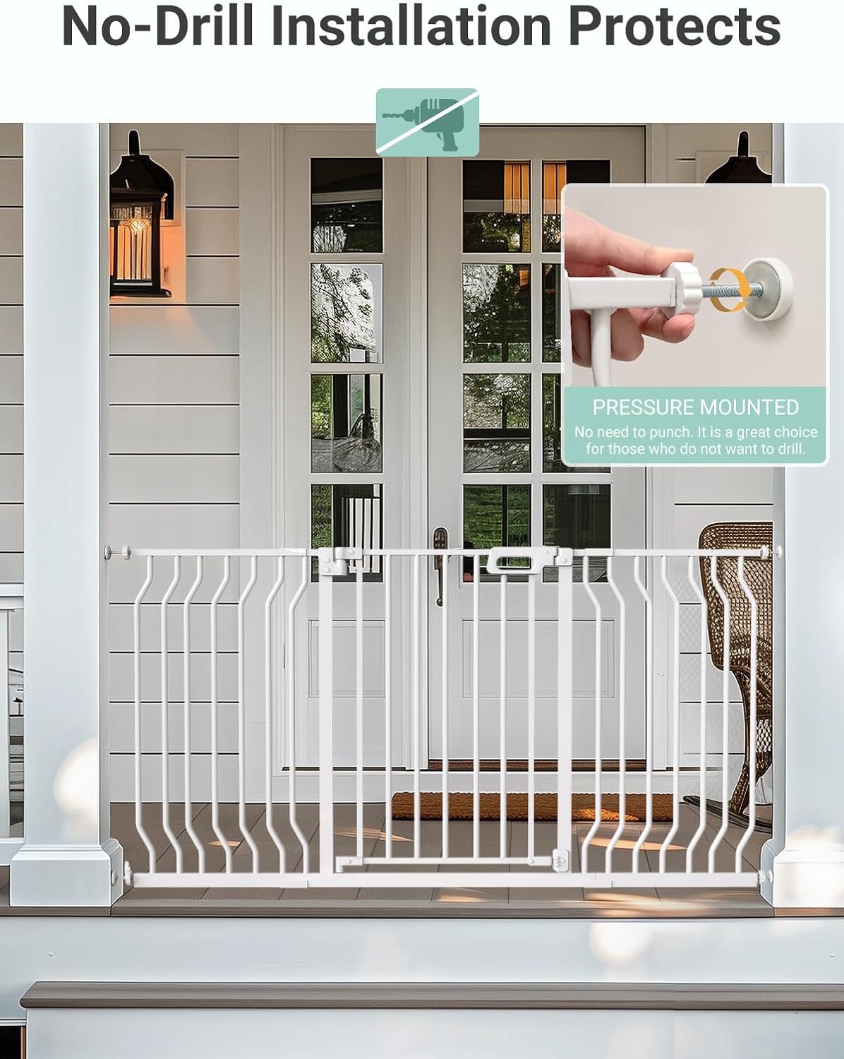 - ใ๐ฃ๐ฟ๐ฒ๐๐๐๐ฟ๐ฒ ๐ ๐ผ๐๐ป๐๐ฒ๐ฑ&๐๐ฟ๐ถ๐น๐น ๐ถ๐ป๐๐๐ฎ๐น๐น๐ฎ๐๐ถ๐ผ๐ปใThe GROWNSY baby gate offers a hassle-free setup. Its punch-free design means you can install it quickly without drills or tools, protecting your walls in the process. For enhanced stairway safety, we recommend using the drill installation method with wall cups. This versatile gate is perfect for stairways, doorways, and hallways to ensure the safety of children and pets.