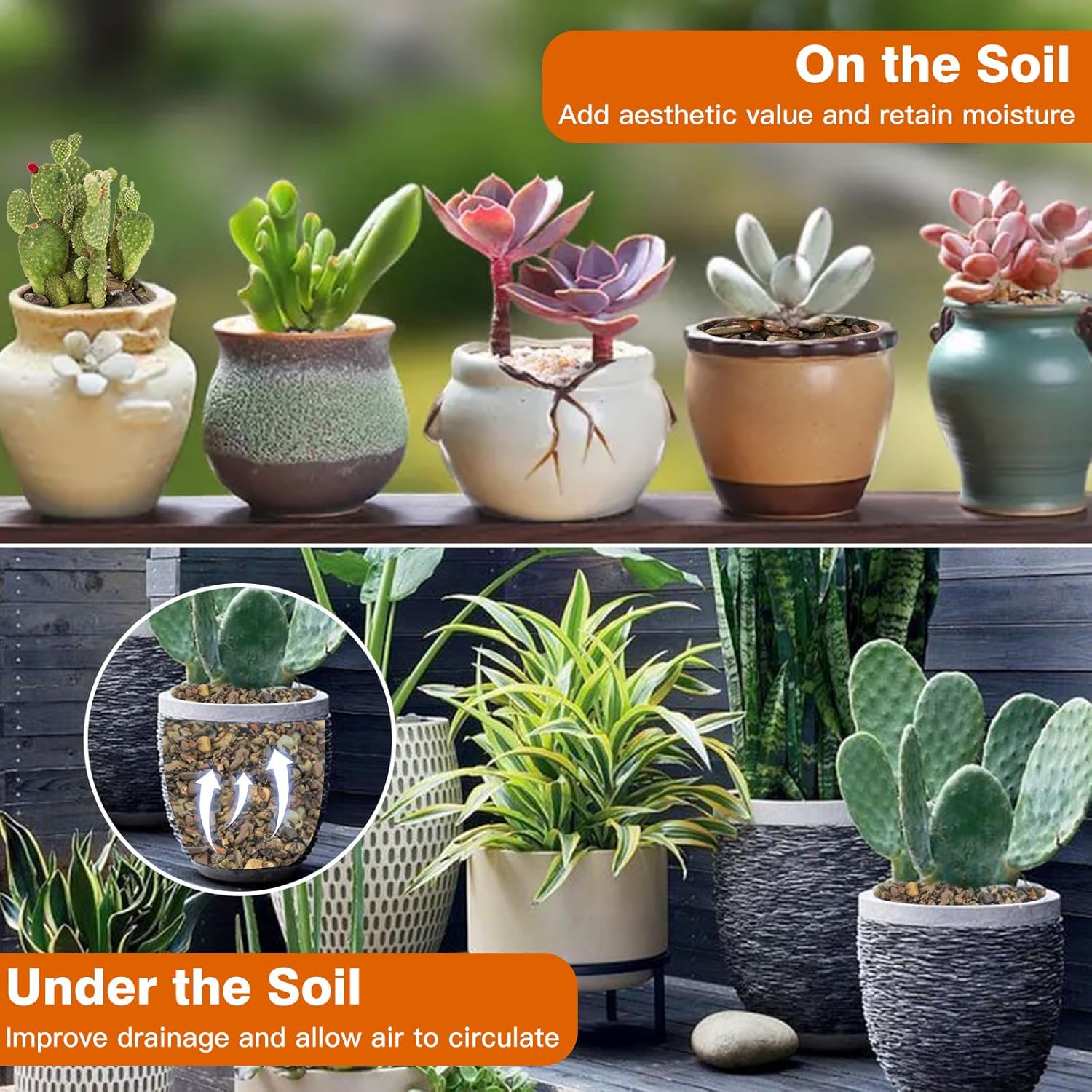 - BENEFIT FOR PLANT --- Rocks are very matched with green plantsοΌ like bonsai, succulents and flowersοΌThey can provide mineral trace elements for plants and cover soil to keep the soil from splashing during watering. It is perfect for home decor and a creative interior design.