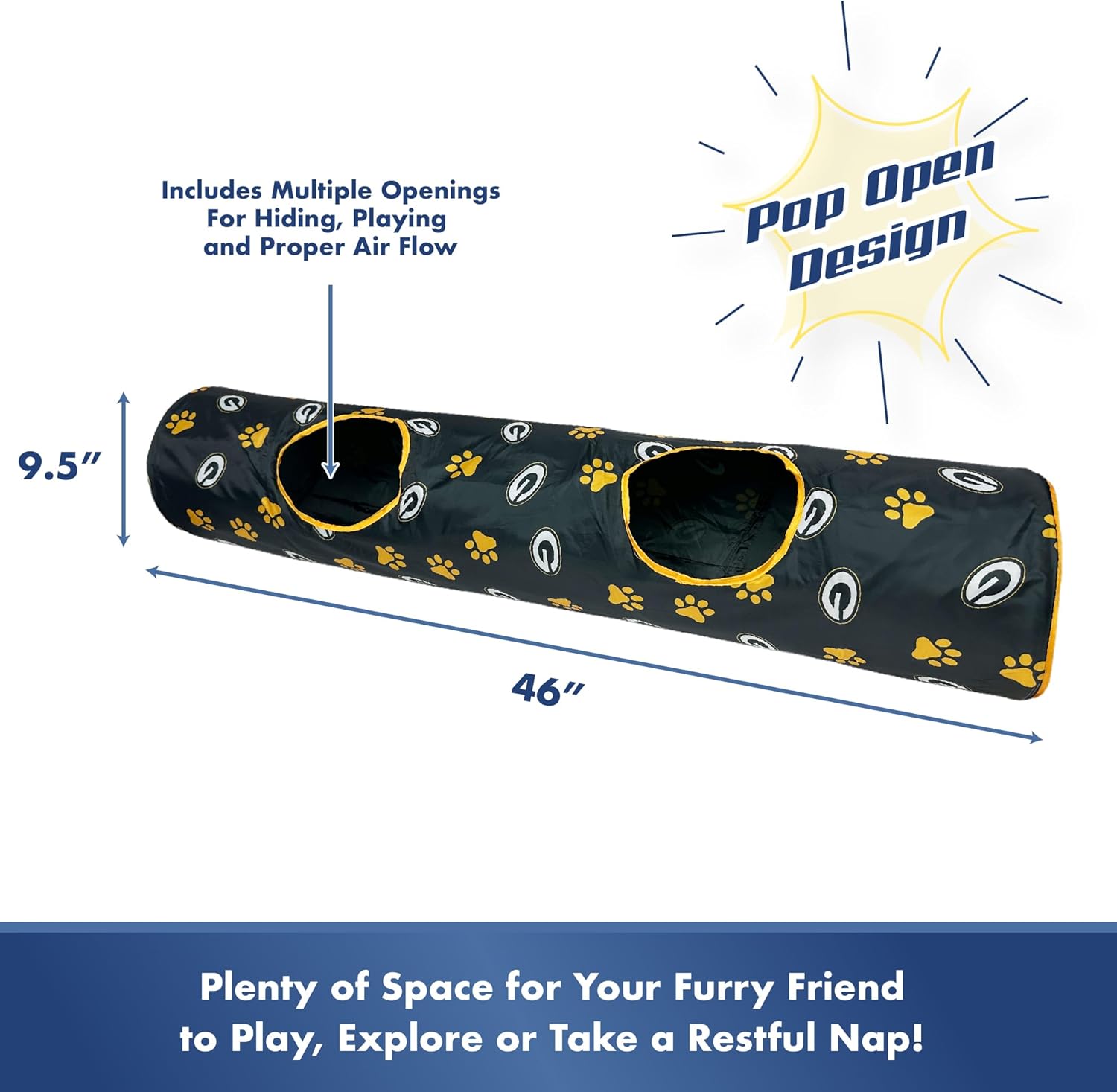 NFL Green Bay Packers Cat Tunnel Tube Toy with Plush Football Catnip and Feathers Collapsible Tunnel for Cats to Play, Peek and Hide, Sporty & Fun Cat Tunnel Toy with Team Logo All-Over Design!