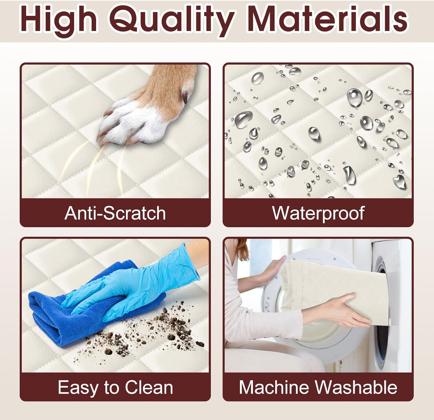 Dog Car Seat Cover, Durable Waterproof Scratch Proof Nonslip Dog Hammock, Pet Back Seat Covers with Pocket for Cars SUVs and Trucks - L, Beige/Black