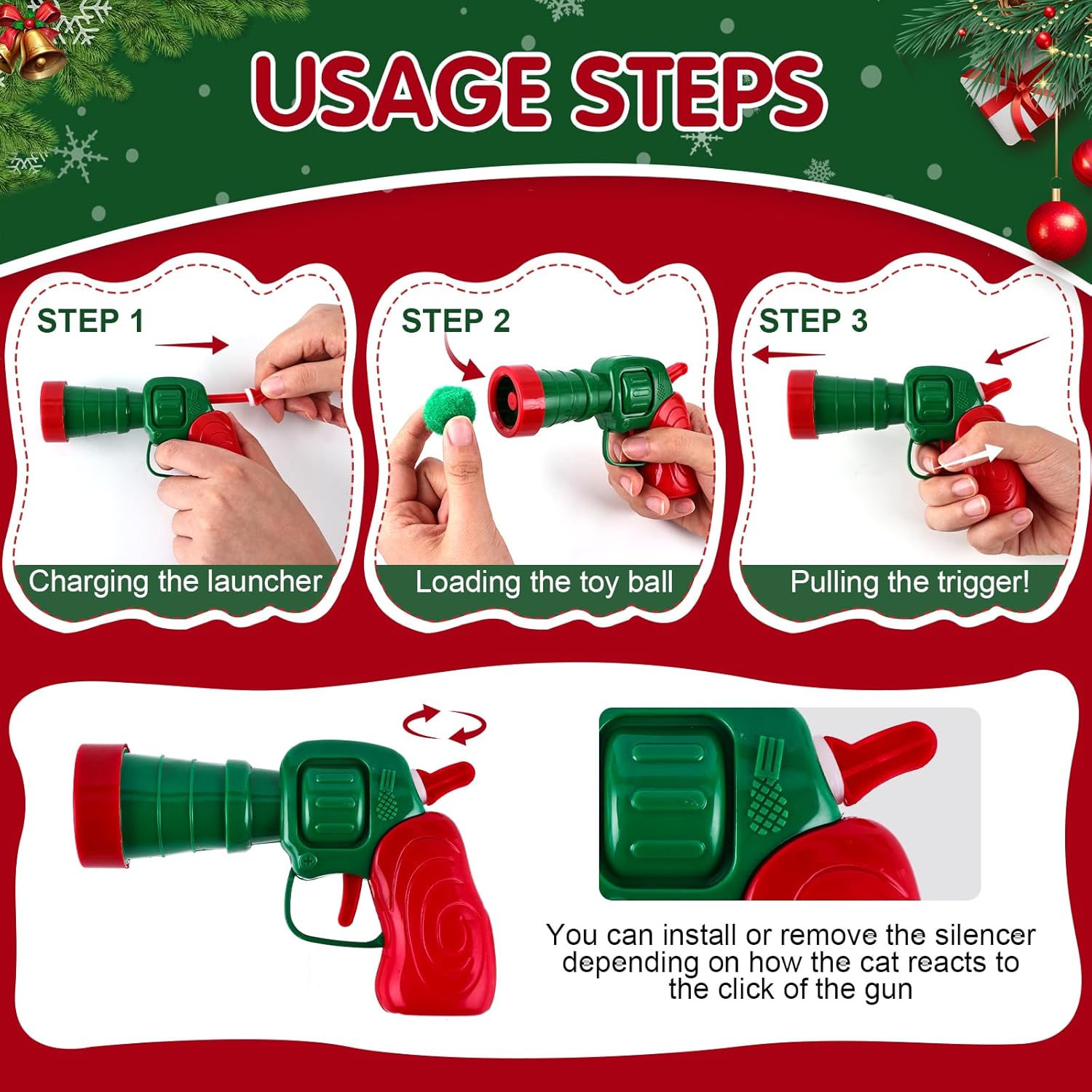 - 【Durable materials for lasting holiday fun】This launcher reaches up to 7 meters and is made from strong ABS. The soft, elastic toy balls are tear-resistant, ensuring endless entertainment for your kitty this festive season!