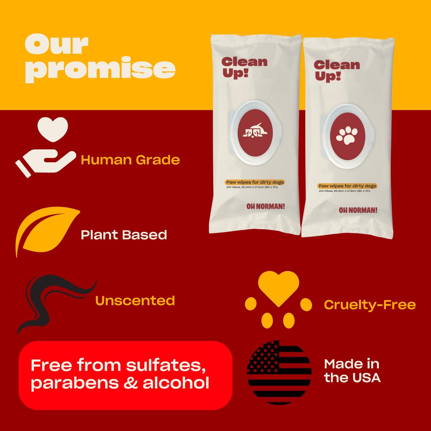 - CLEAN UP BODY WIPES: Our body wipes are perfect for your dirty dogs! Each wipe is human grade and unscented. Each package contains 48, 12x8" wipes.