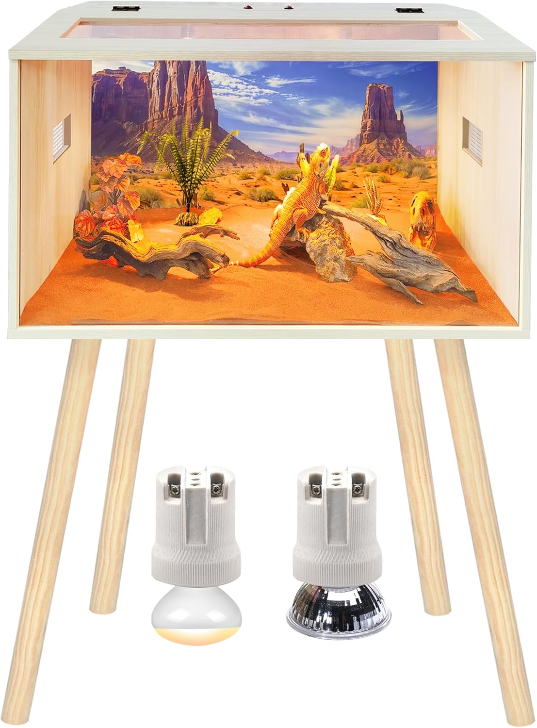 - 【Integrated Bulb Sockets】Take the hassle out of lighting with built-in bulb sockets and switches. Feature two (the larger 40-inch and 48-inch models feature 3) sockets compatible with E26/E27 bulbs (bulbs not included), supporting heating, daylight, and night lighting needs. Simple to install, these pre-installed sockets saves money on lamps and make it effortless to create the ideal environment for your reptiles.