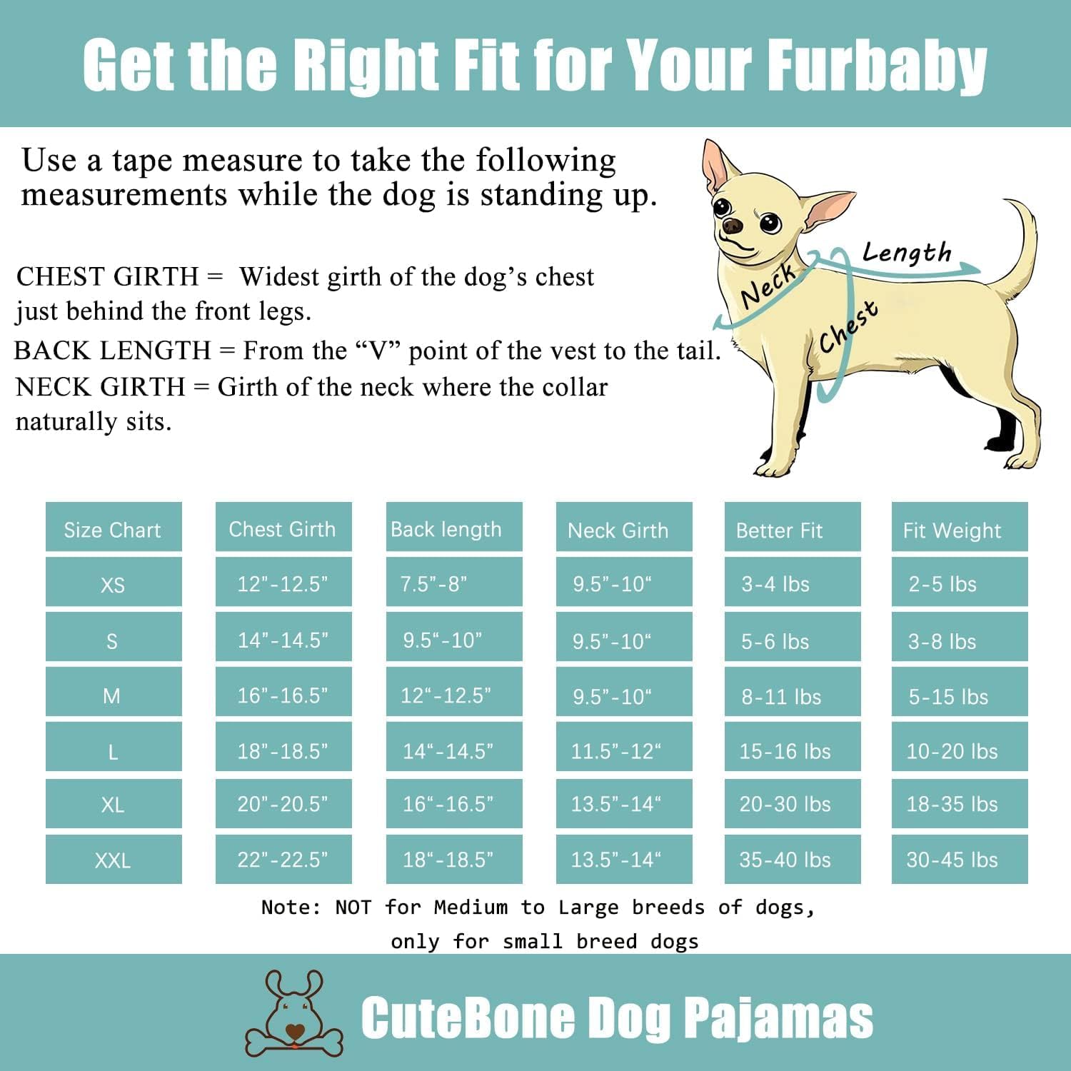 - 【Advantage】CuteBone dog pajamas are easy to put on and take off. And they are available in a variety of fun designs so you can show off your doggie's sense of style. Stylish pajamas are not only comfortable, but they keep dander and hair off of your furniture. Puppy pajamas are also a good idea as new puppies have less fat than an adult dog to help them keep warm.