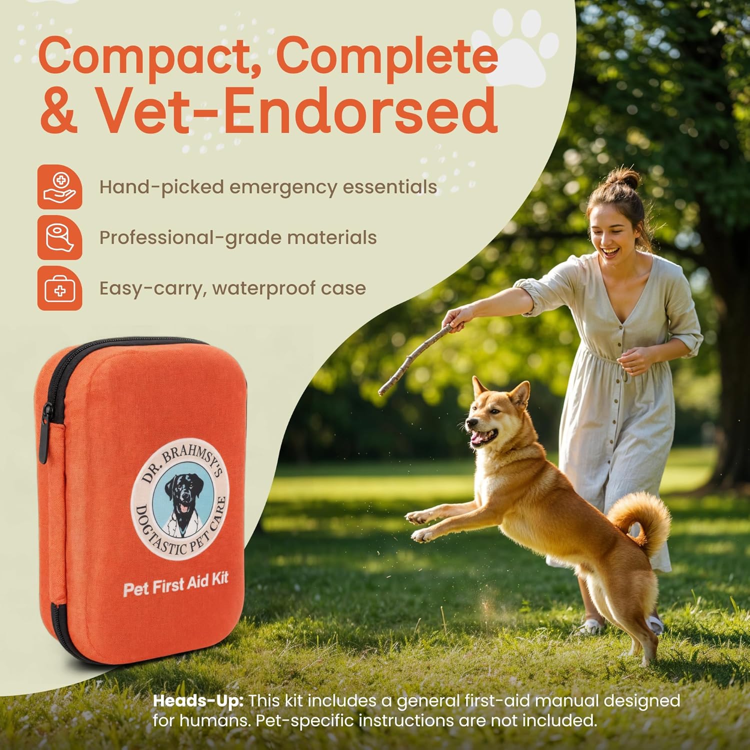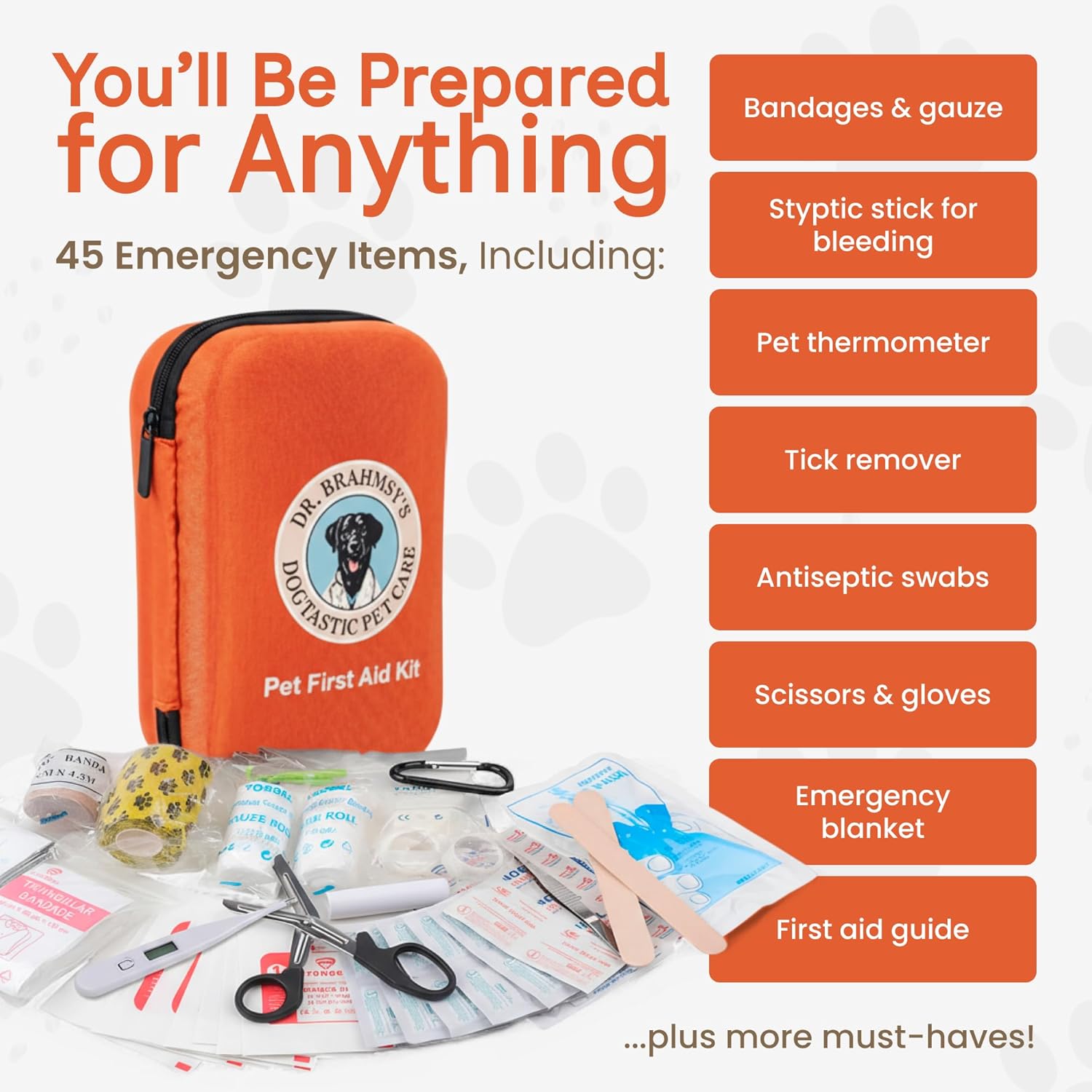 Dr Brahmsy’s Pet First Aid Kit for Dogs and Cats - Vet-Approved Essential Survival and Emergency Supplies for Home, Travel, Camping, Hiking - Packed in a Portable Waterproof Pouch - 45-Piece Set